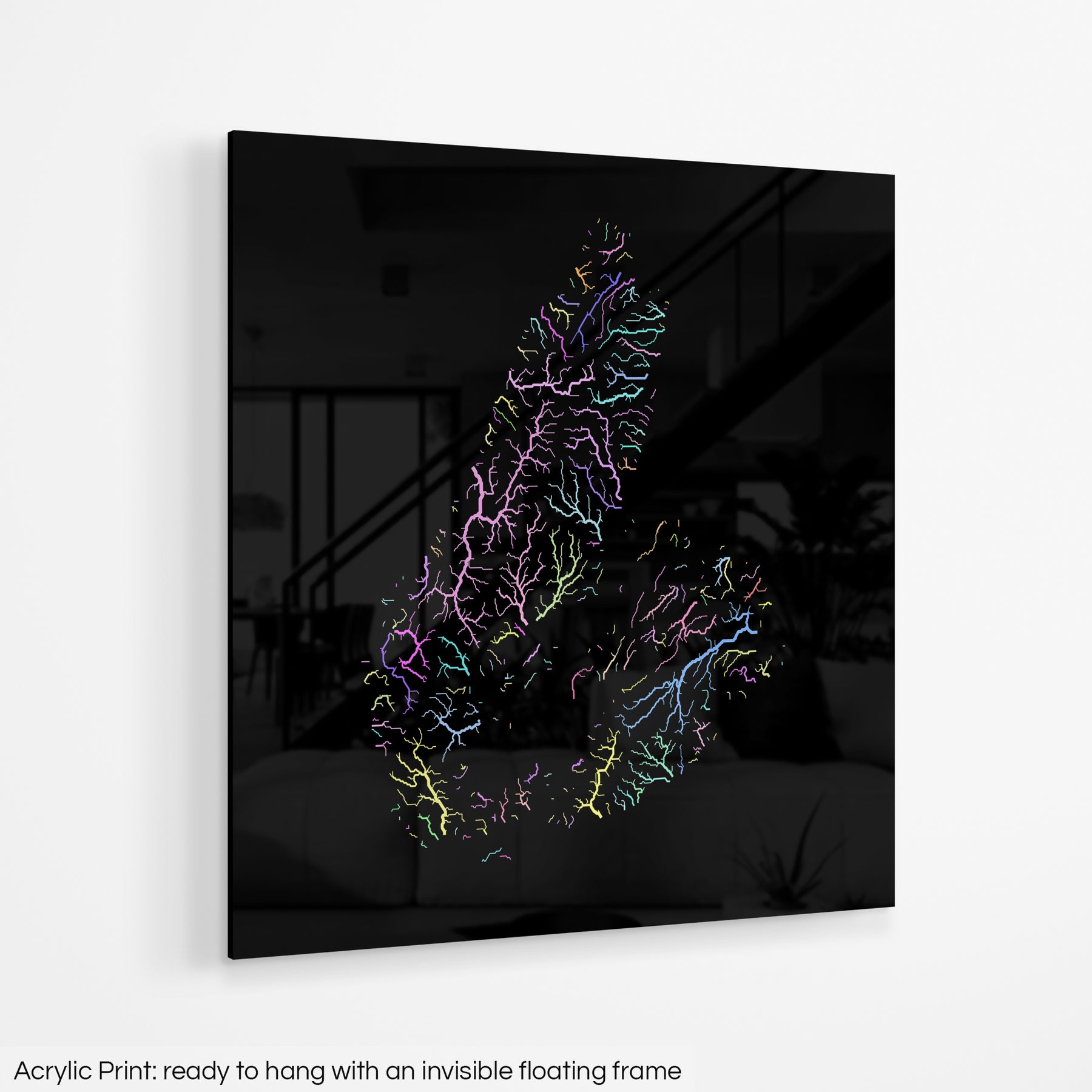 The fine art Giclée print is hand mounted onto a 10mm thick, premium polished, high-gloss acrylic glass that results in a vibrant finish. The transparency of the acrylic enhances the colours and details of the artwork, creating a stunning visual effect that will make a bold statement in any space.