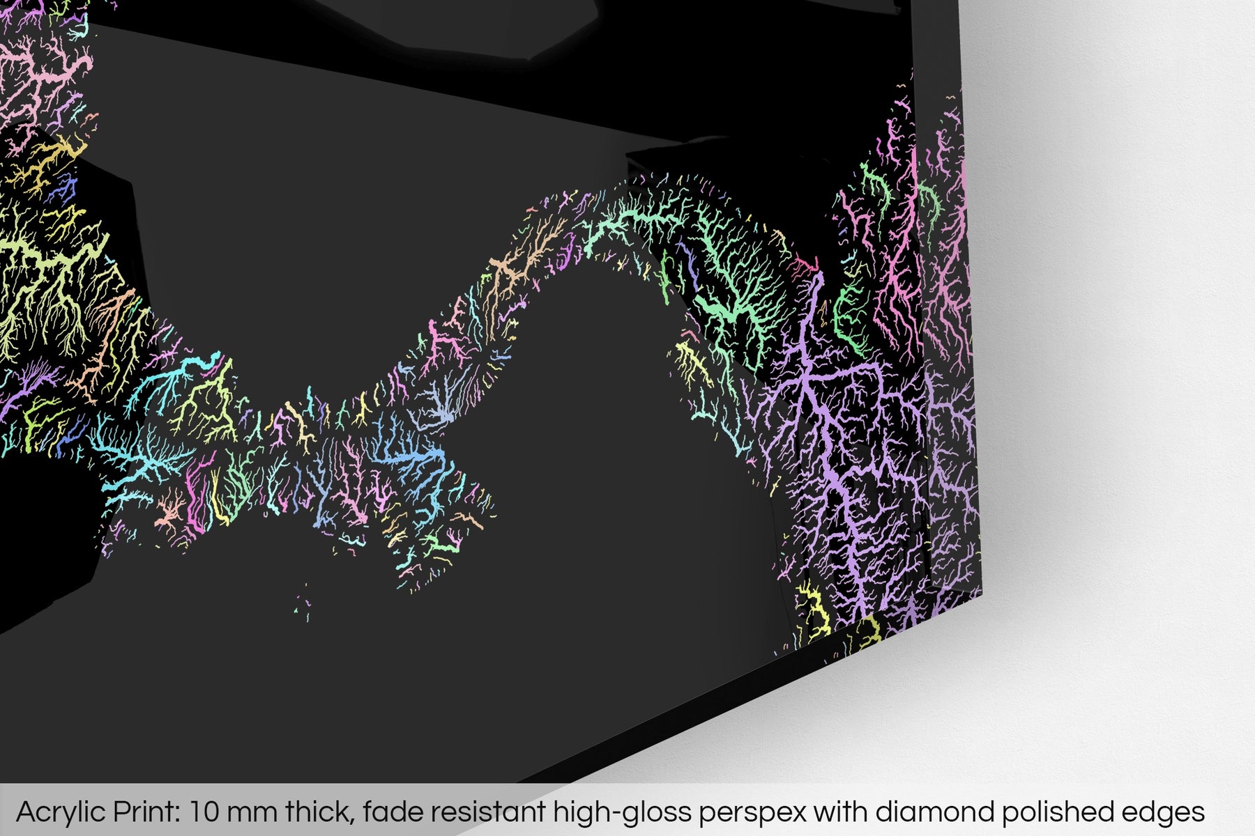The fine art Giclée print is hand mounted onto a 10mm thick, premium polished, high-gloss acrylic glass that results in a vibrant finish. The transparency of the acrylic enhances the colours and details of the artwork, creating a stunning visual effect that will make a bold statement in any space.