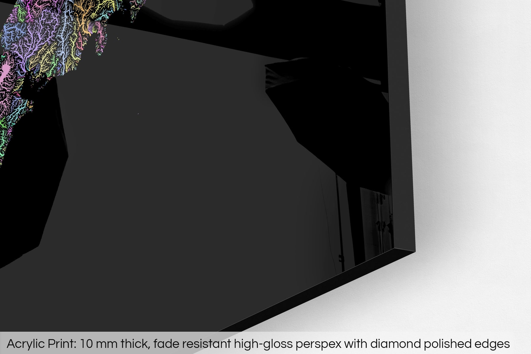 The fine art Giclée print is hand mounted onto a 10mm thick, premium polished, high-gloss acrylic glass that results in a vibrant finish. The transparency of the acrylic enhances the colours and details of the artwork, creating a stunning visual effect that will make a bold statement in any space.