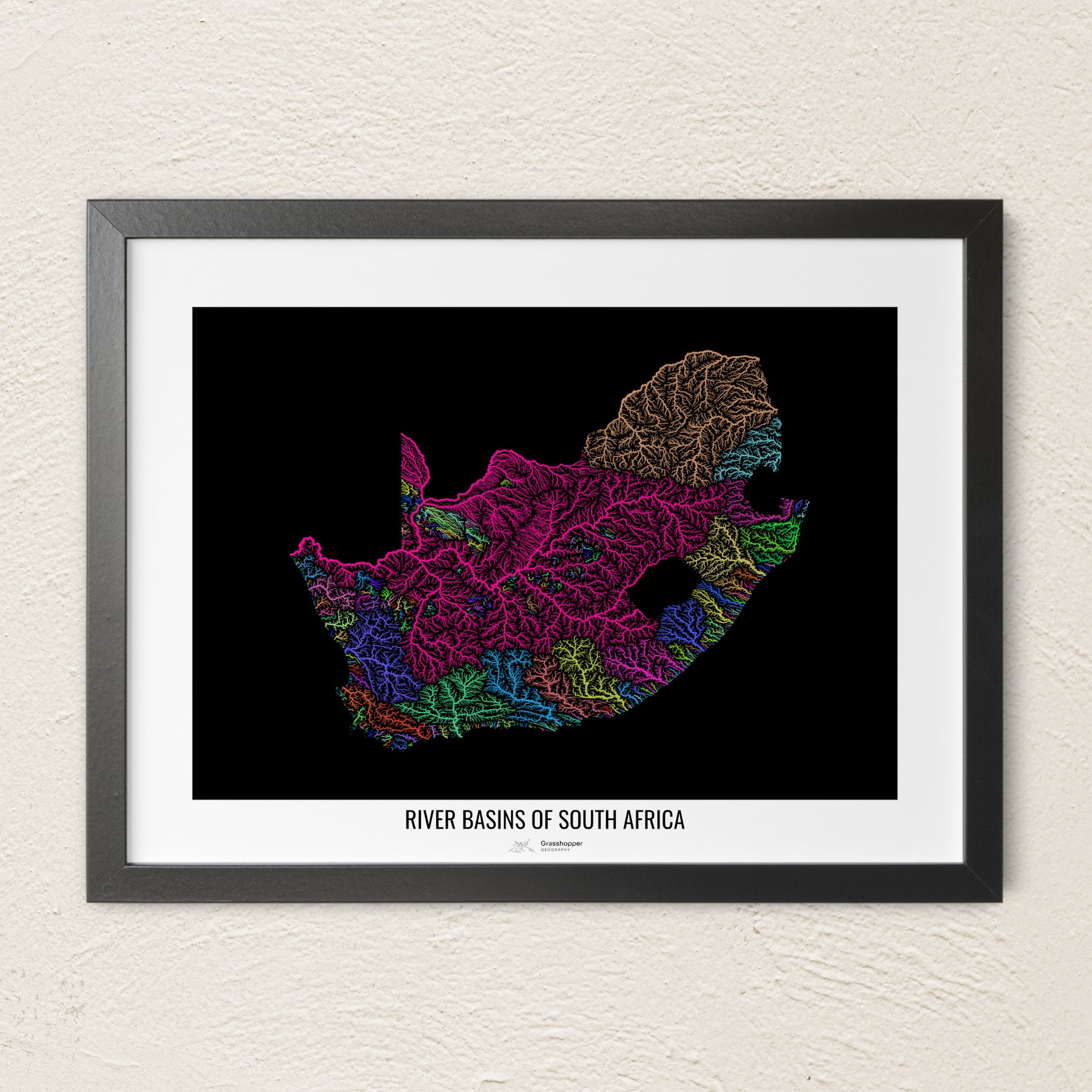 South Africa - River basin map, rainbow colours - Wall Art