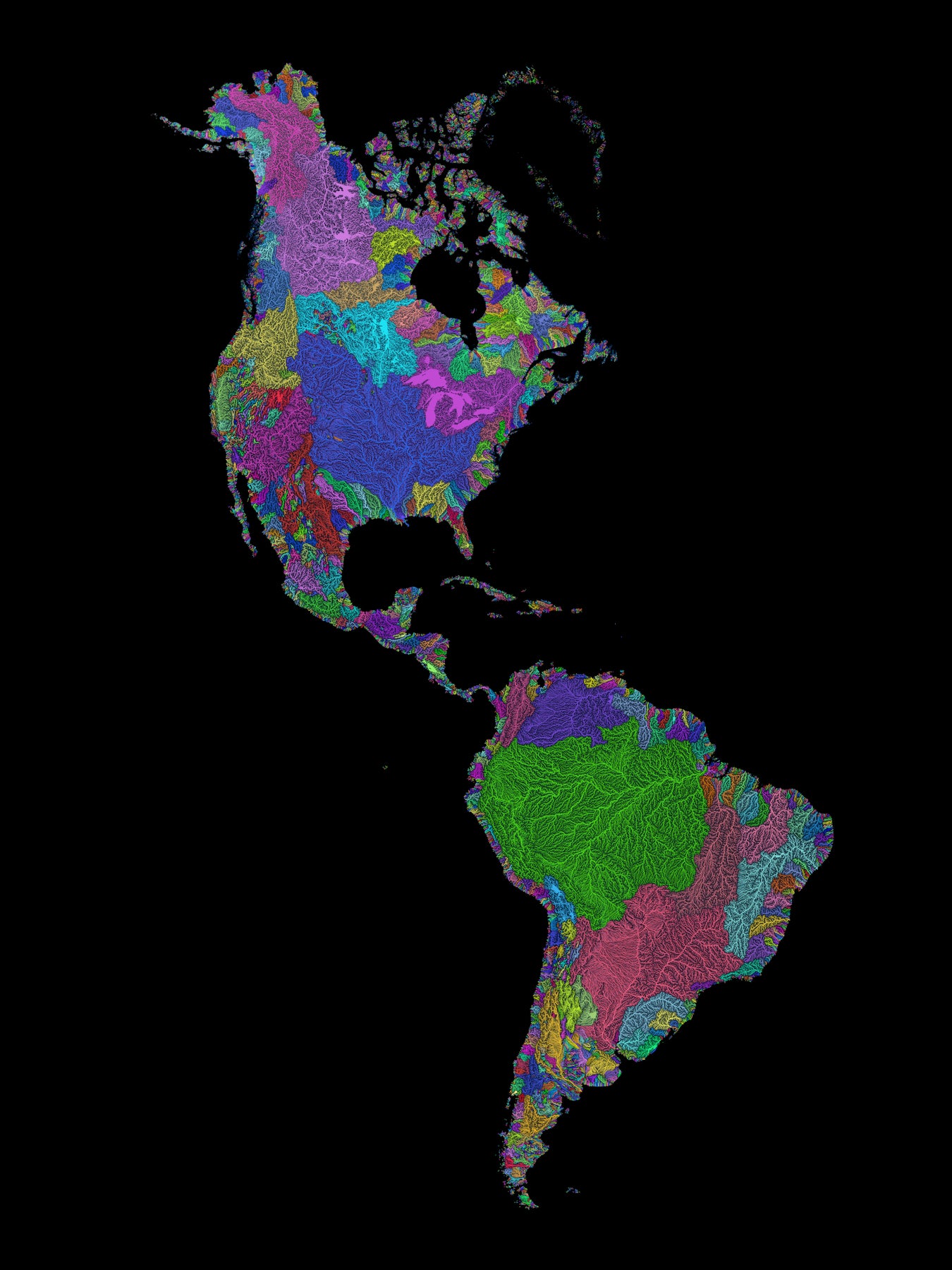 CUSTOM The Americas - River basin map, rainbow colours - Wall Art
