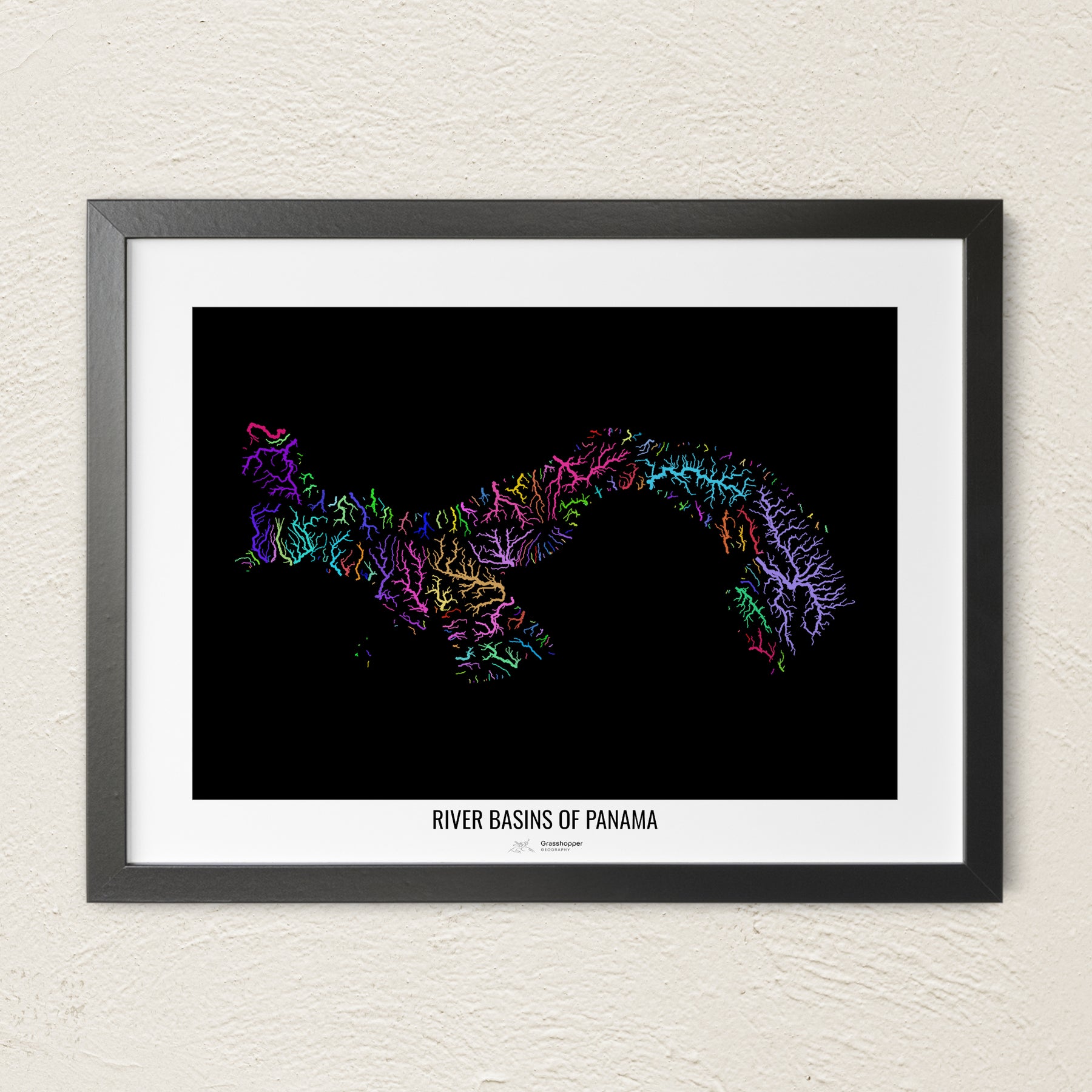 Panama - River basin map, rainbow colours - Wall Art
