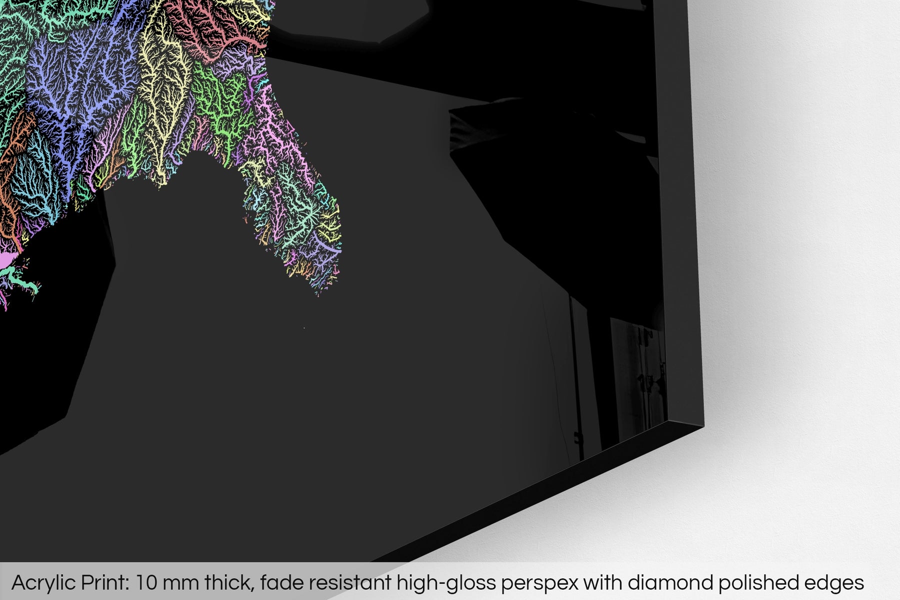 The fine art Giclée print is hand mounted onto a 10mm thick, premium polished, high-gloss acrylic glass that results in a vibrant finish. The transparency of the acrylic enhances the colours and details of the artwork, creating a stunning visual effect that will make a bold statement in any space.