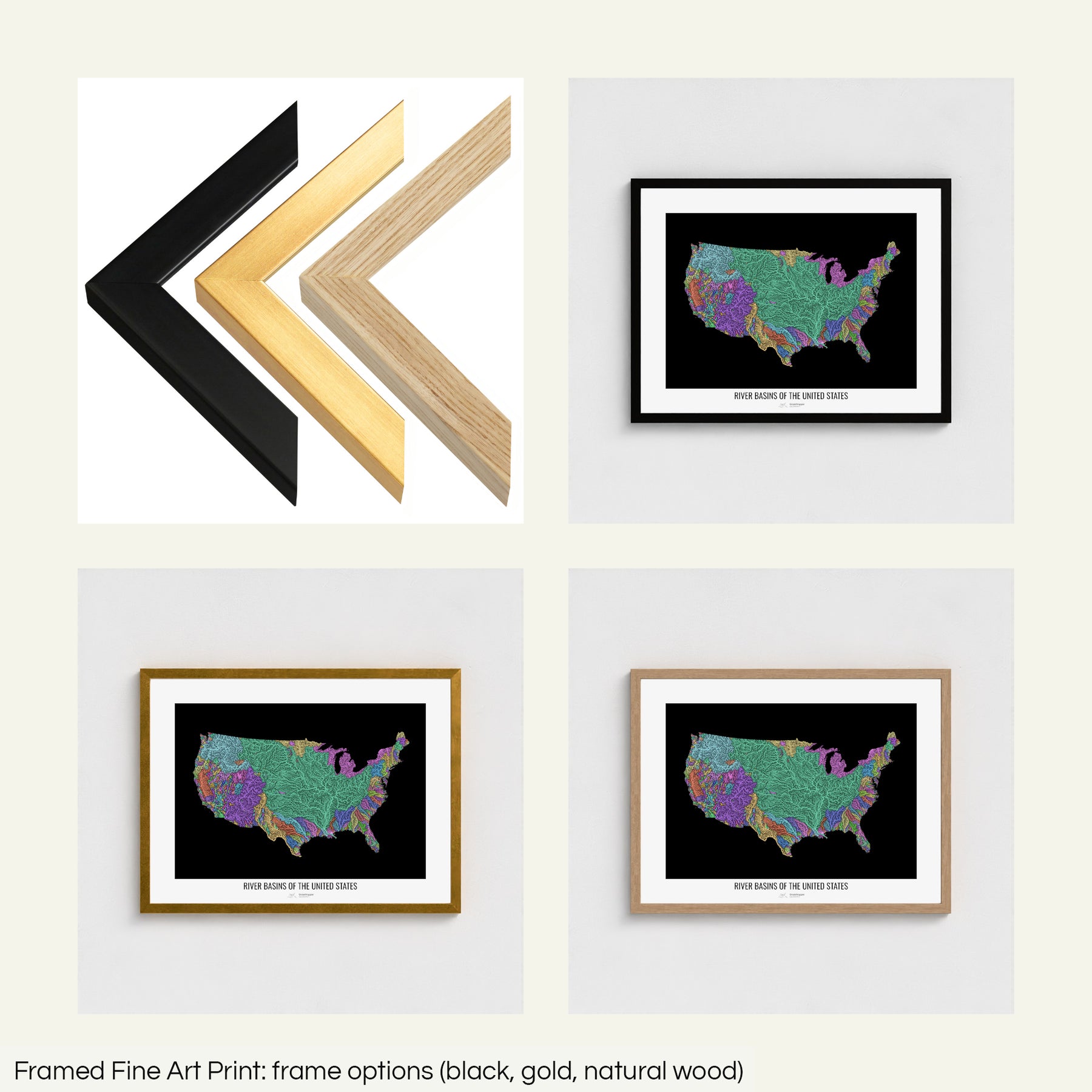 The museum-quality fine art paper exhibits intricate detail, and professional Giclée printing ensures the deepest blacks and the most vibrant colours. Crafted from sustainably sourced wood, the frames are available in a range of colours to match your map and interior.