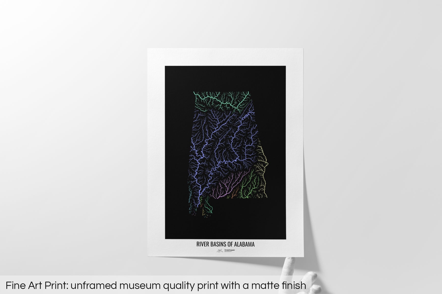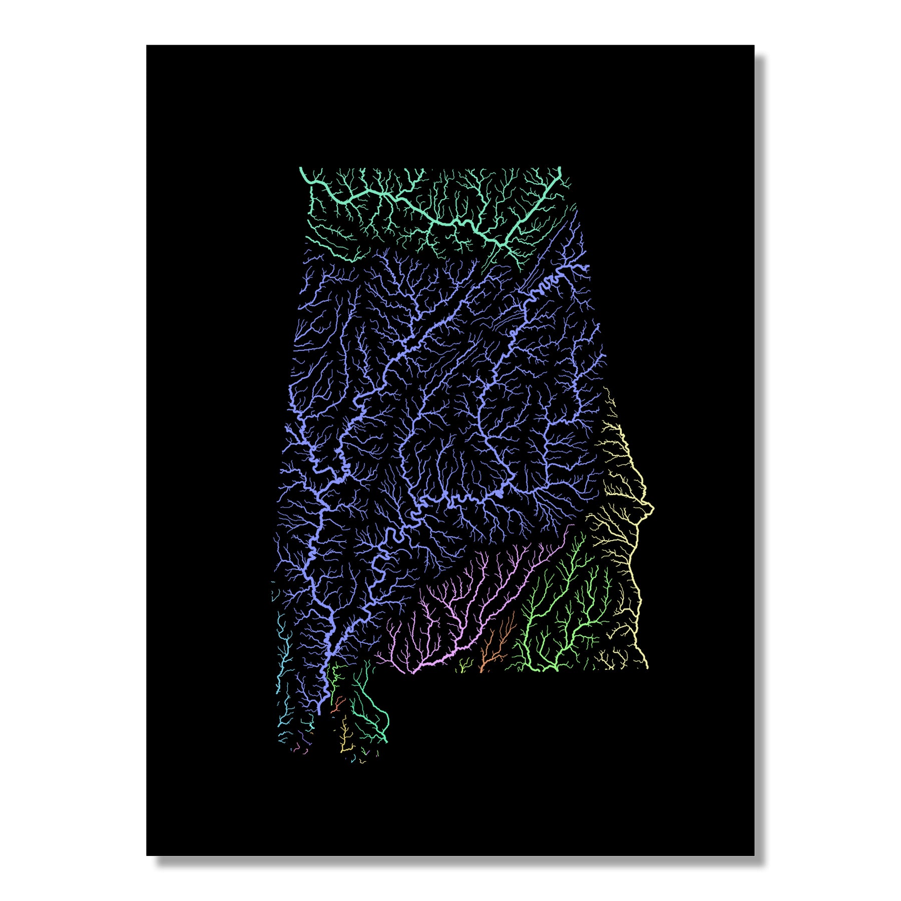 Alabama - River basin map, pastel colours - Wall Art