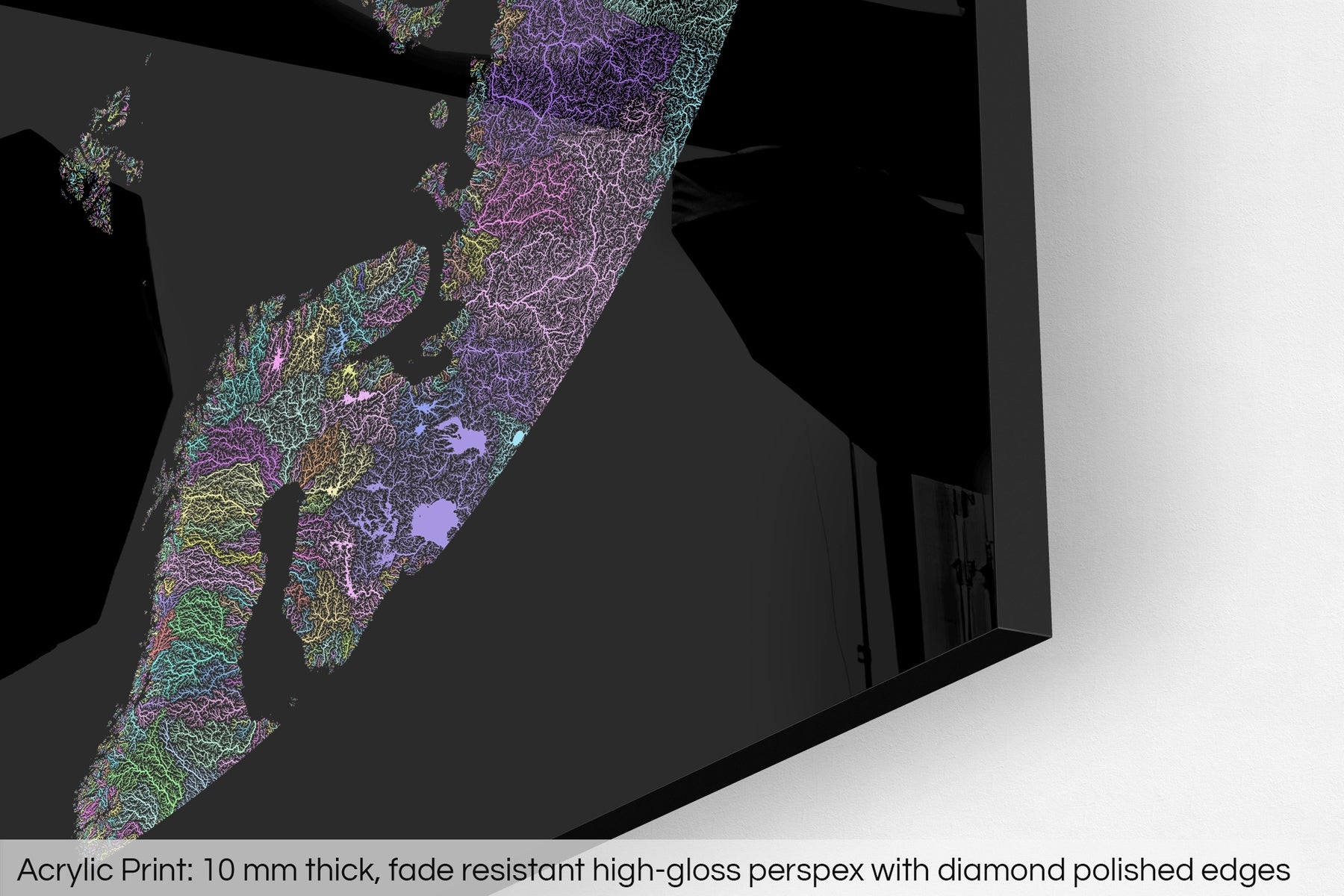 The fine art Giclée print is hand mounted onto a 10mm thick, premium polished, high-gloss acrylic glass that results in a vibrant finish. The transparency of the acrylic enhances the colours and details of the artwork, creating a stunning visual effect that will make a bold statement in any space.