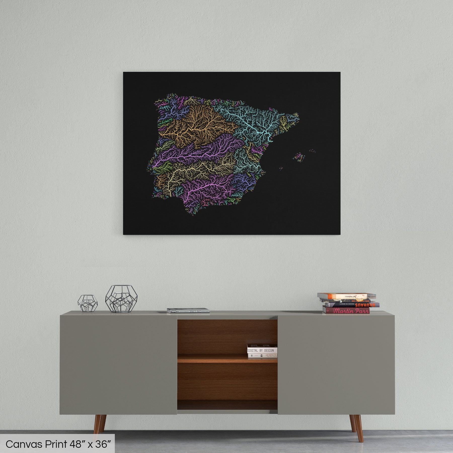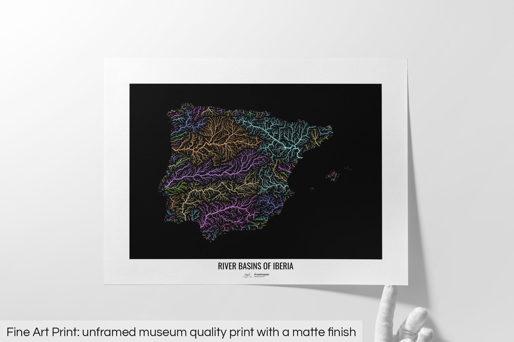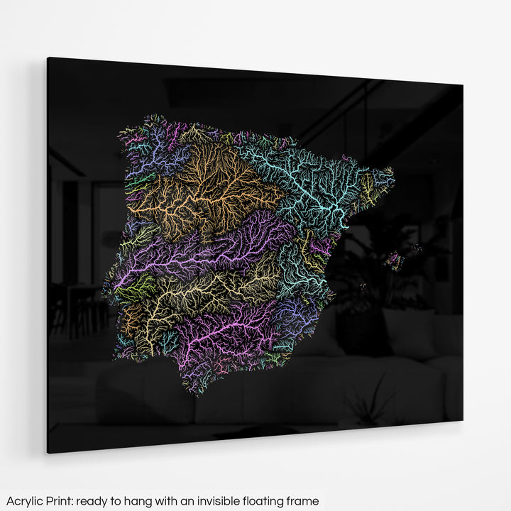 Iberia - River basin map, pastel colours - Wall Art