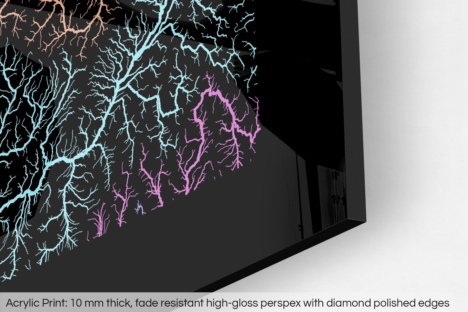 A fine art Giclée print is hand mounted onto 10mm thick high-gloss acrylic perspex that will protect your map from harmful UV light, keeping colours fresh and vivid for years to come. Ready to hang with an invisible floating frame.