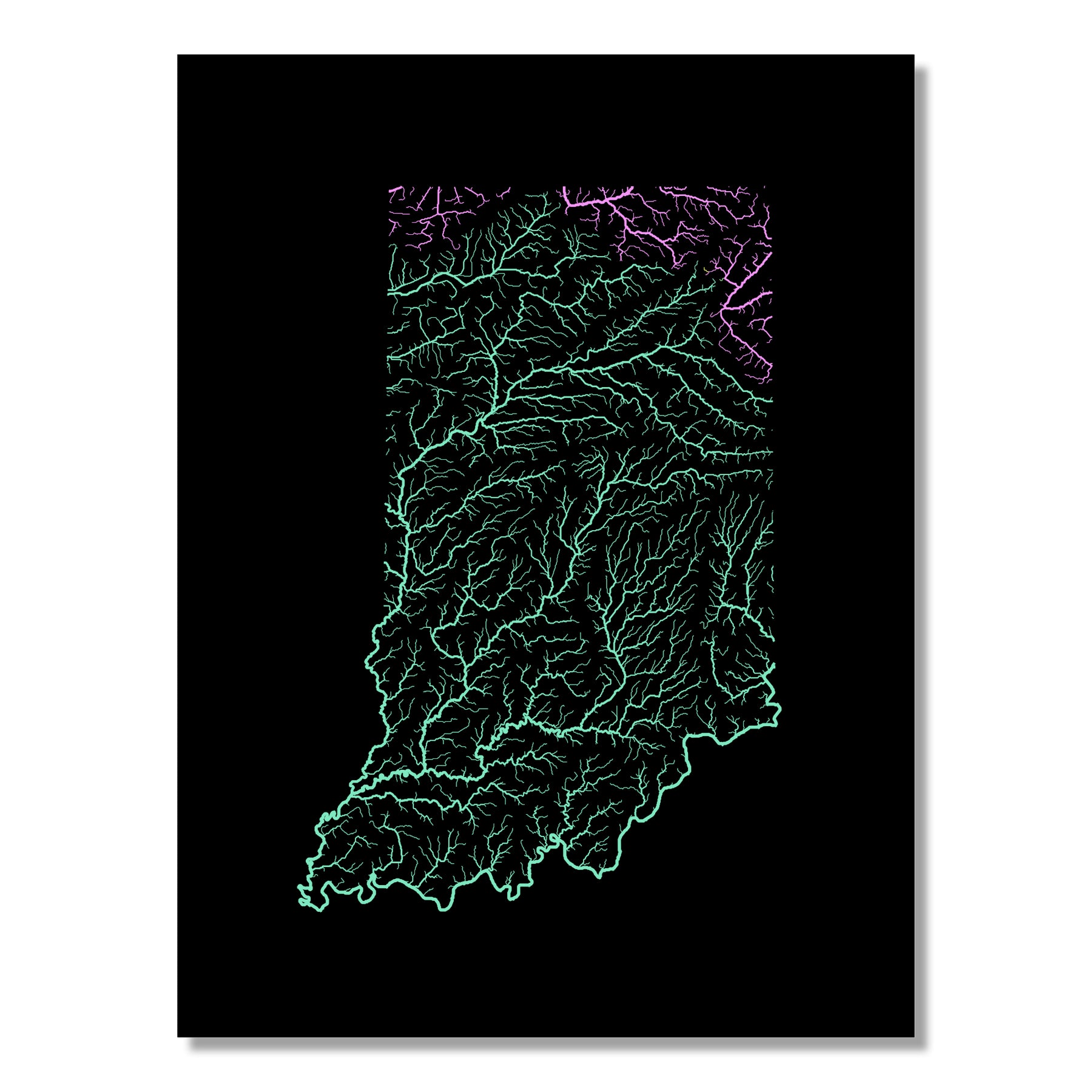 Indiana - River basin map, pastel colours - Wall Art