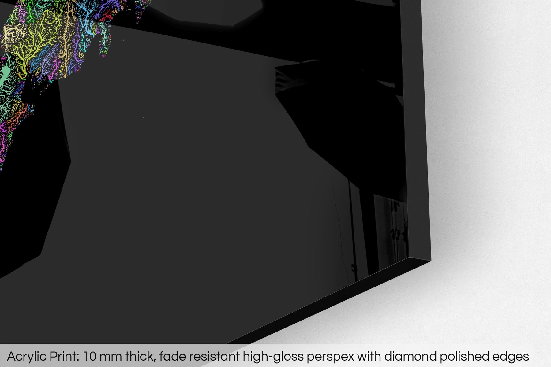The fine art Giclée print is hand mounted onto a 10mm thick, premium polished, high-gloss acrylic glass that results in a vibrant finish. The transparency of the acrylic enhances the colours and details of the artwork, creating a stunning visual effect that will make a bold statement in any space.