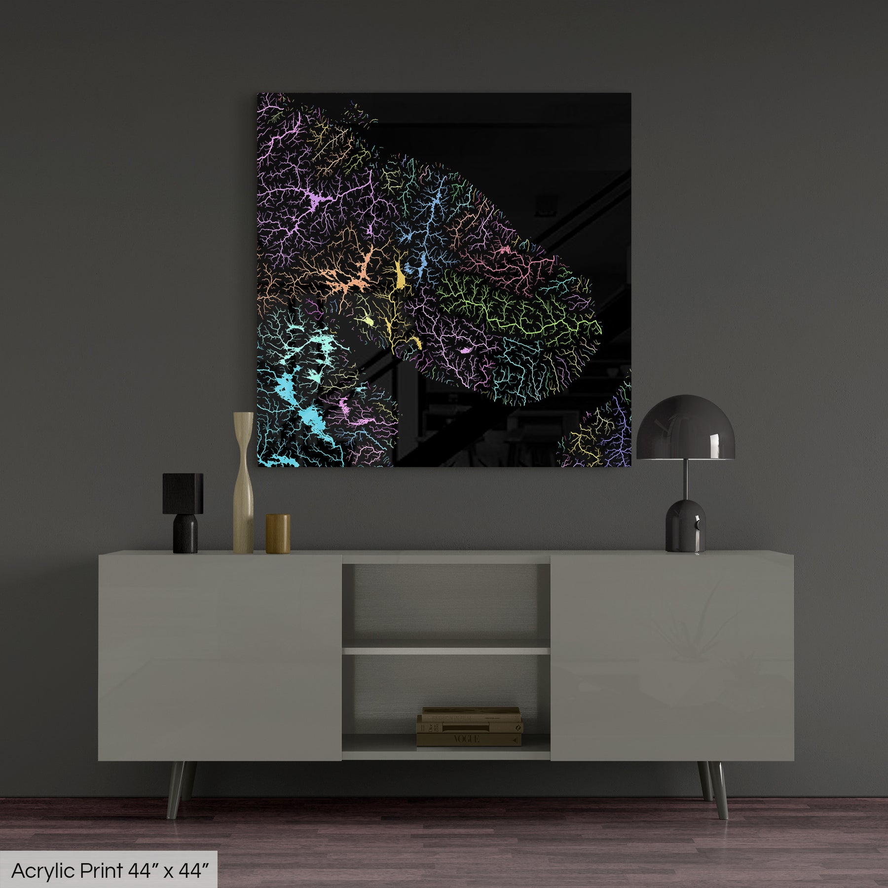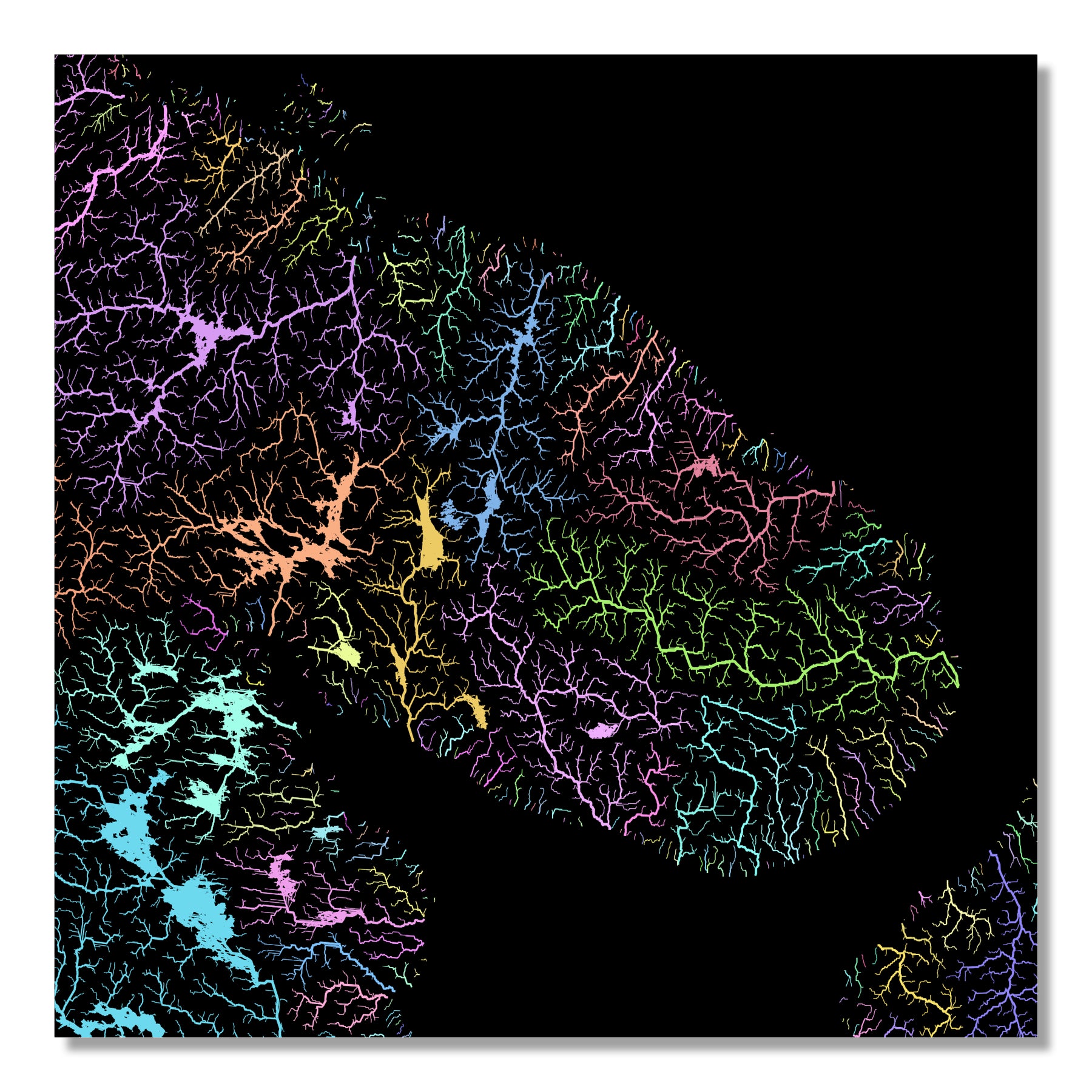 Kola Peninsula - River basin map, pastel colours - Wall Art