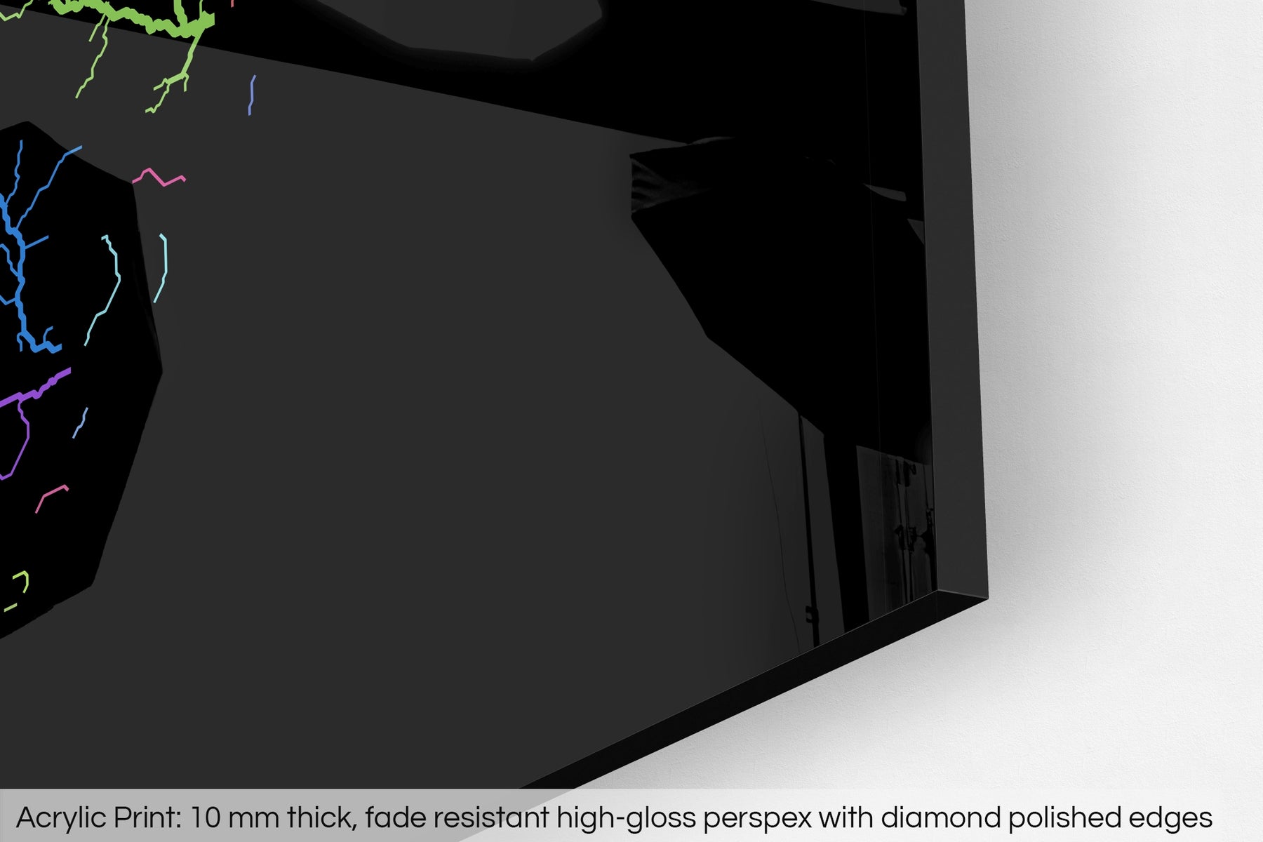 The fine art Giclée print is hand mounted onto a 10mm thick, premium polished, high-gloss acrylic glass that results in a vibrant finish. The transparency of the acrylic enhances the colours and details of the artwork, creating a stunning visual effect that will make a bold statement in any space.