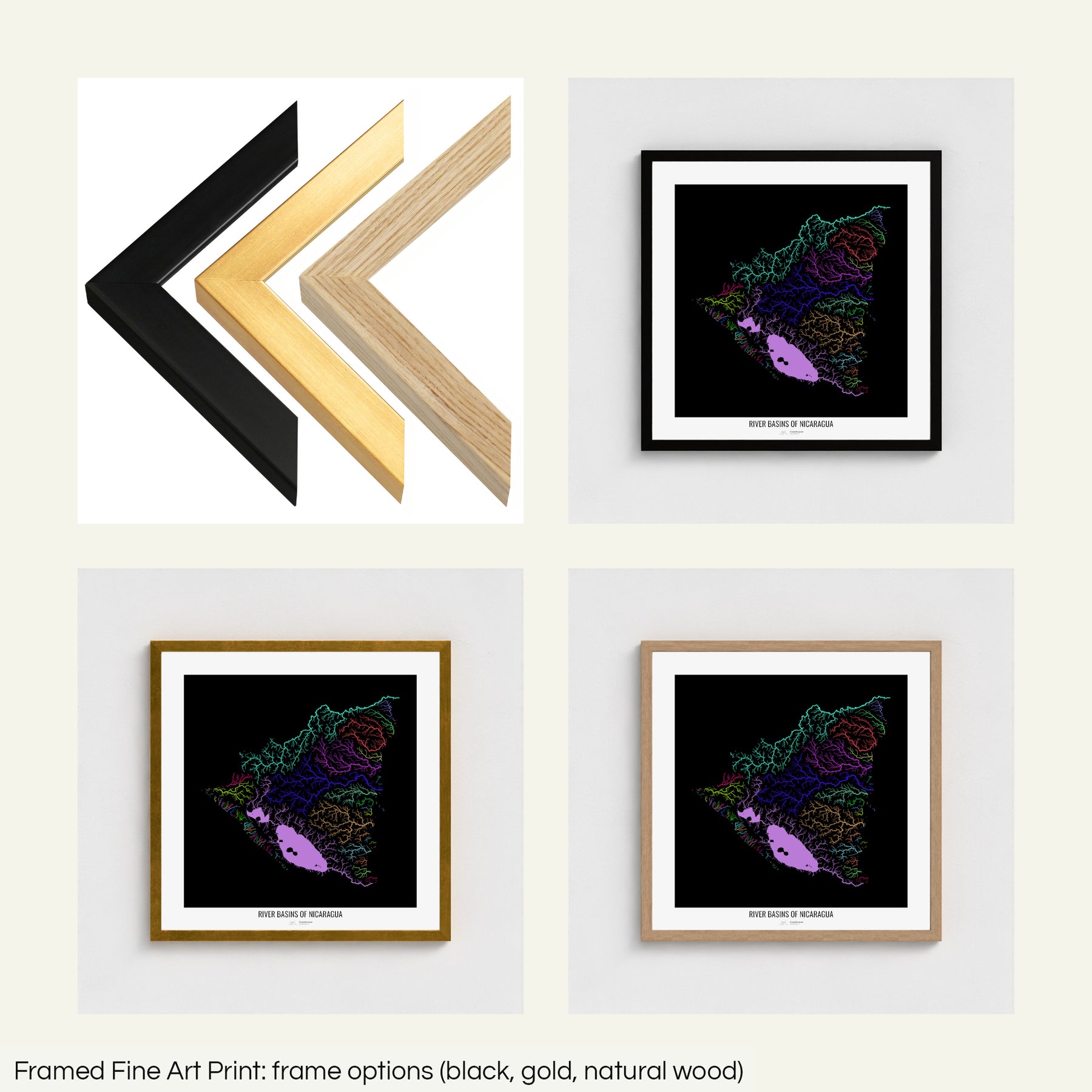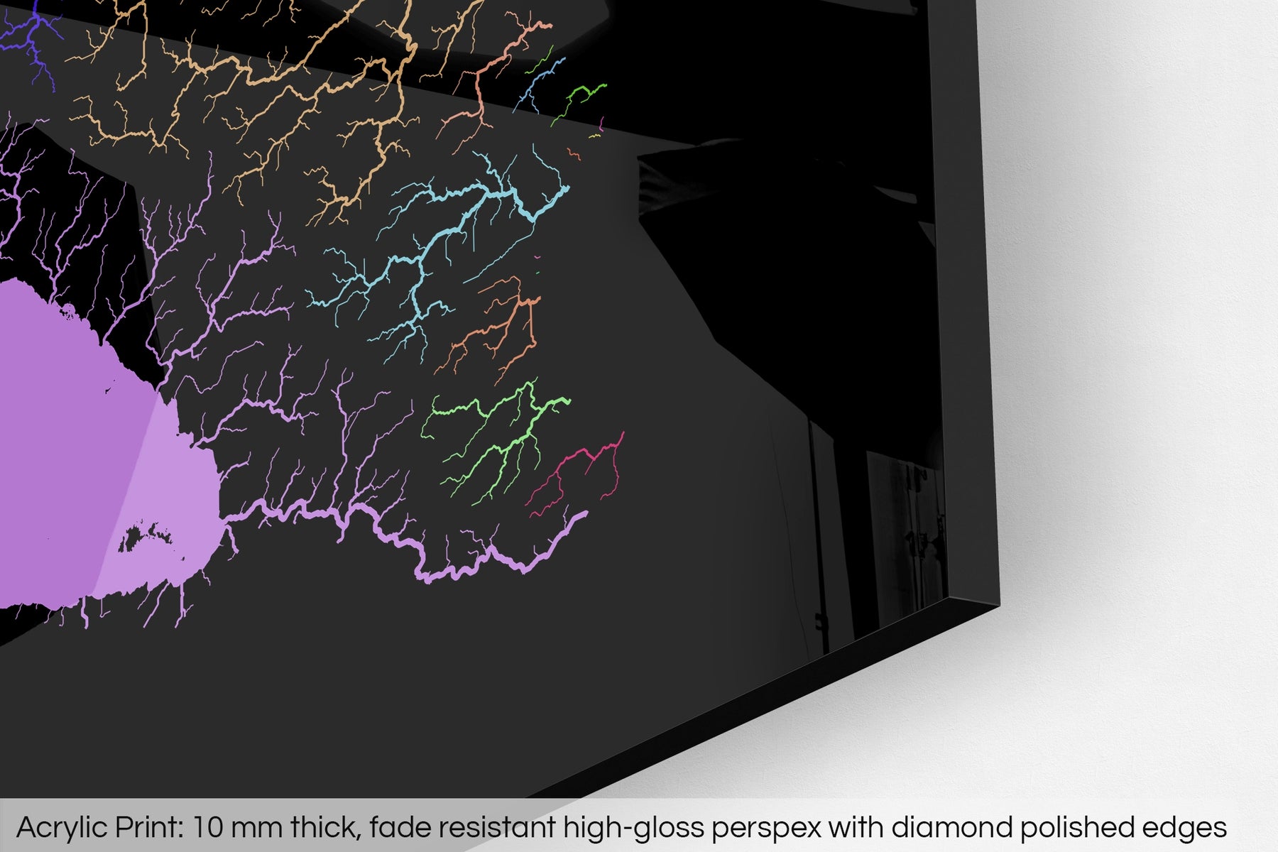Nicaragua - River basin map, rainbow colours - Wall Art