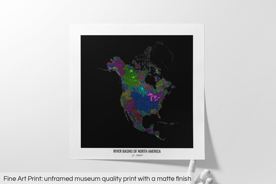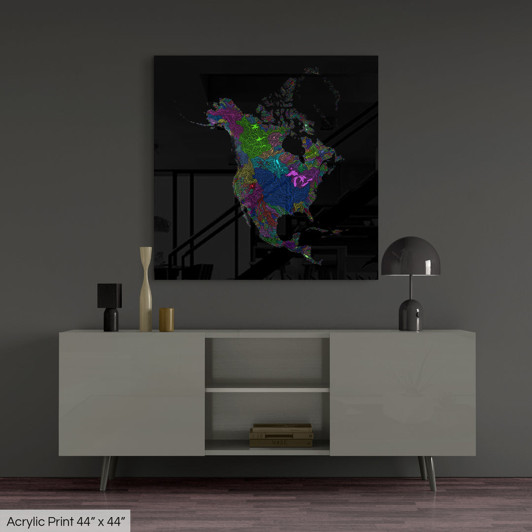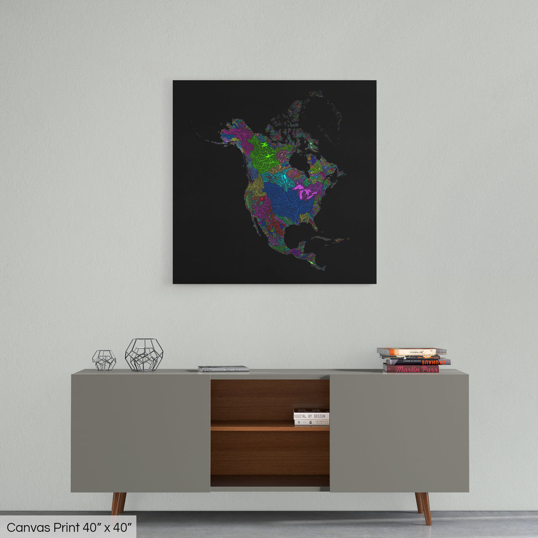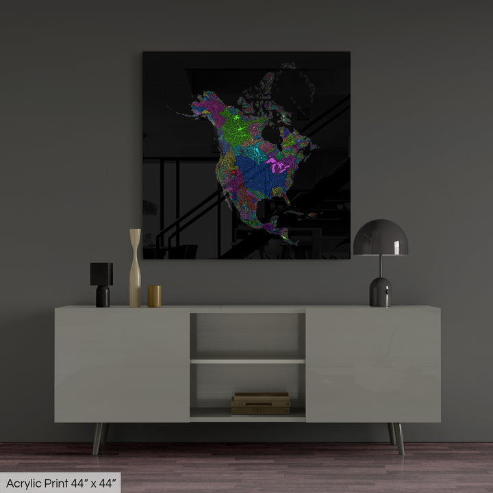 North America - River basin map, rainbow colours - Wall Art