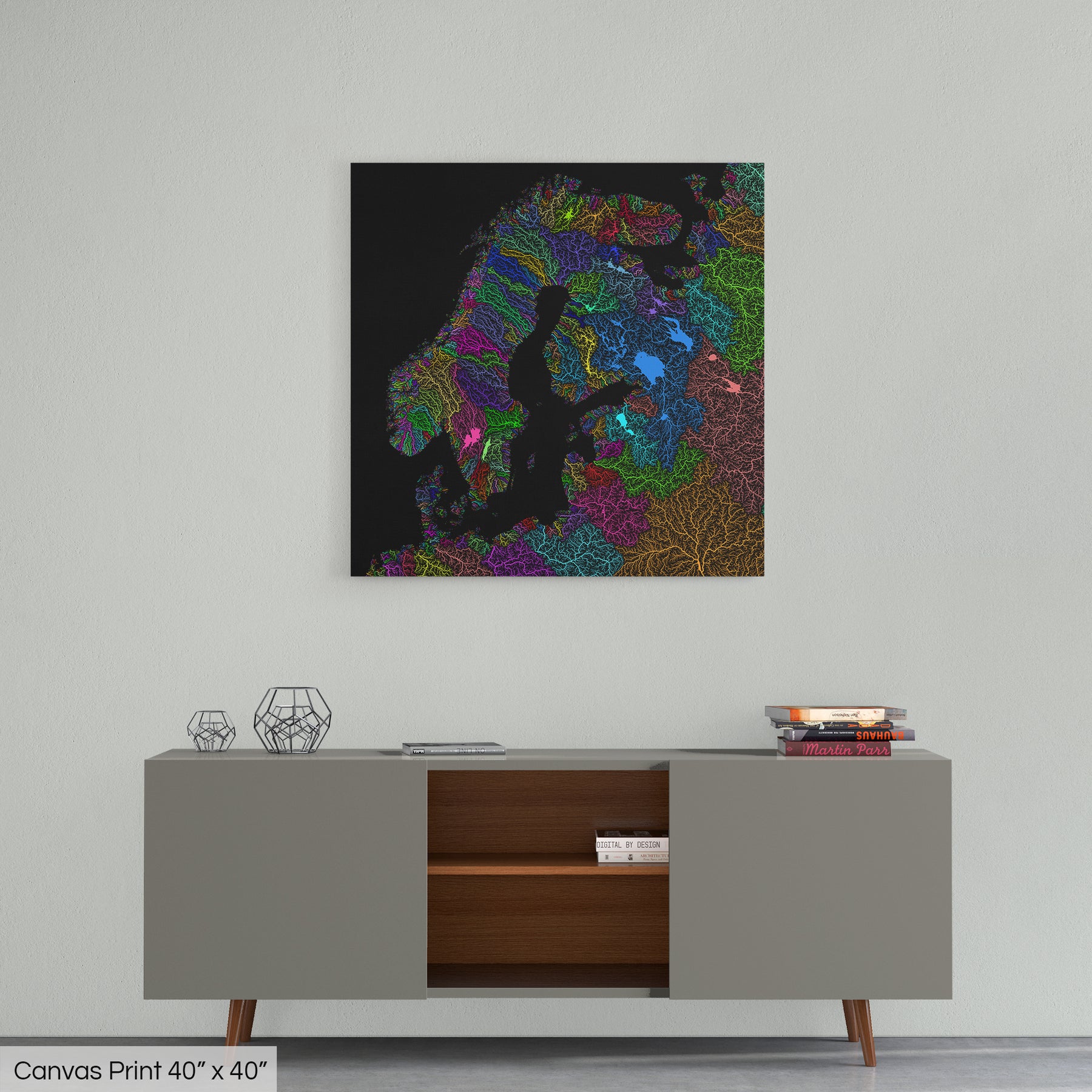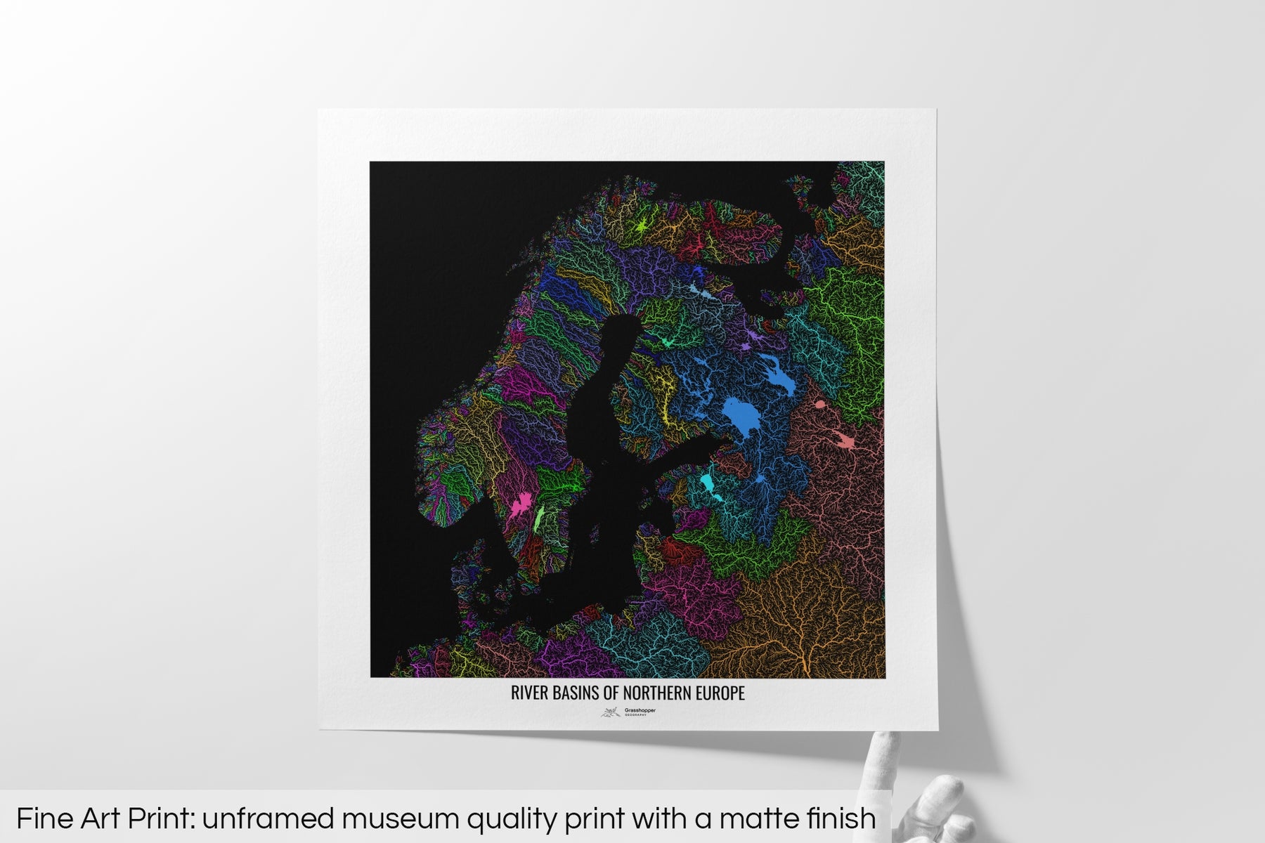 Northern Europe - River basin map, rainbow colours - Wall Art