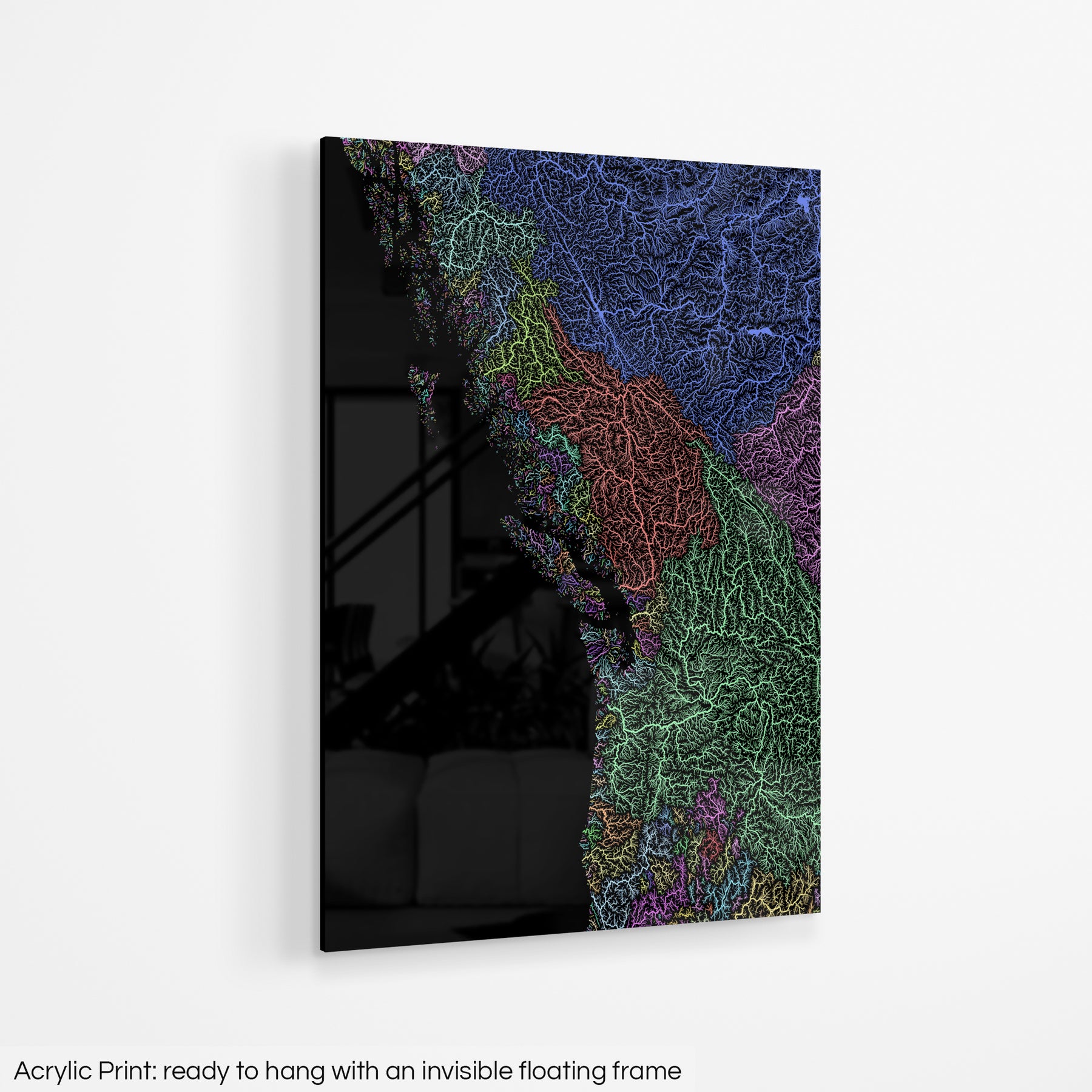 Pacific Northwest - River basin map, pastel colours - Wall Art