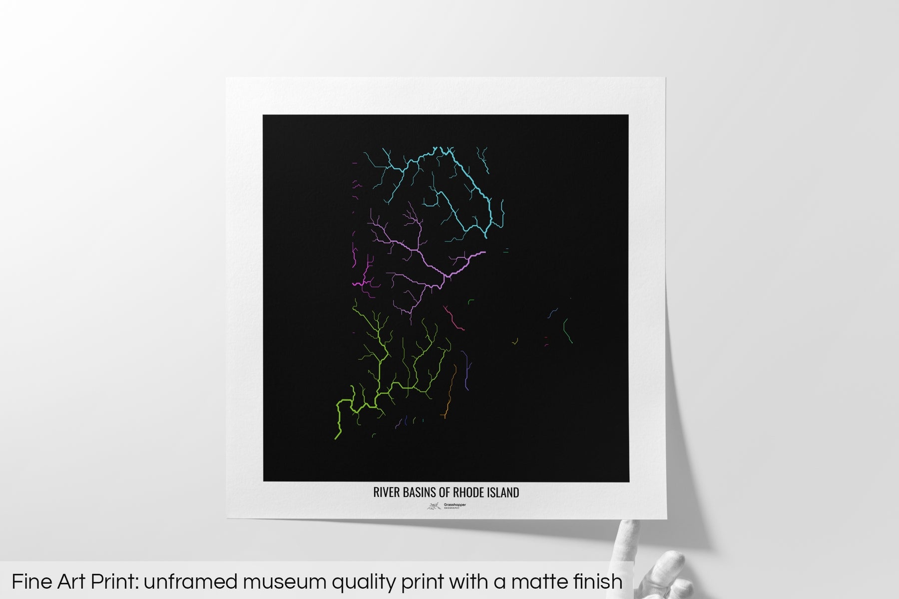 Rhode Island - River basin map, rainbow colours - Wall Art