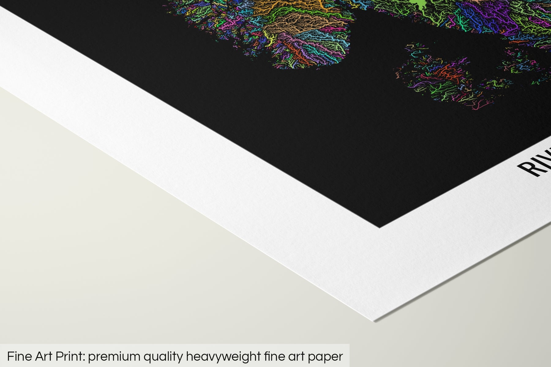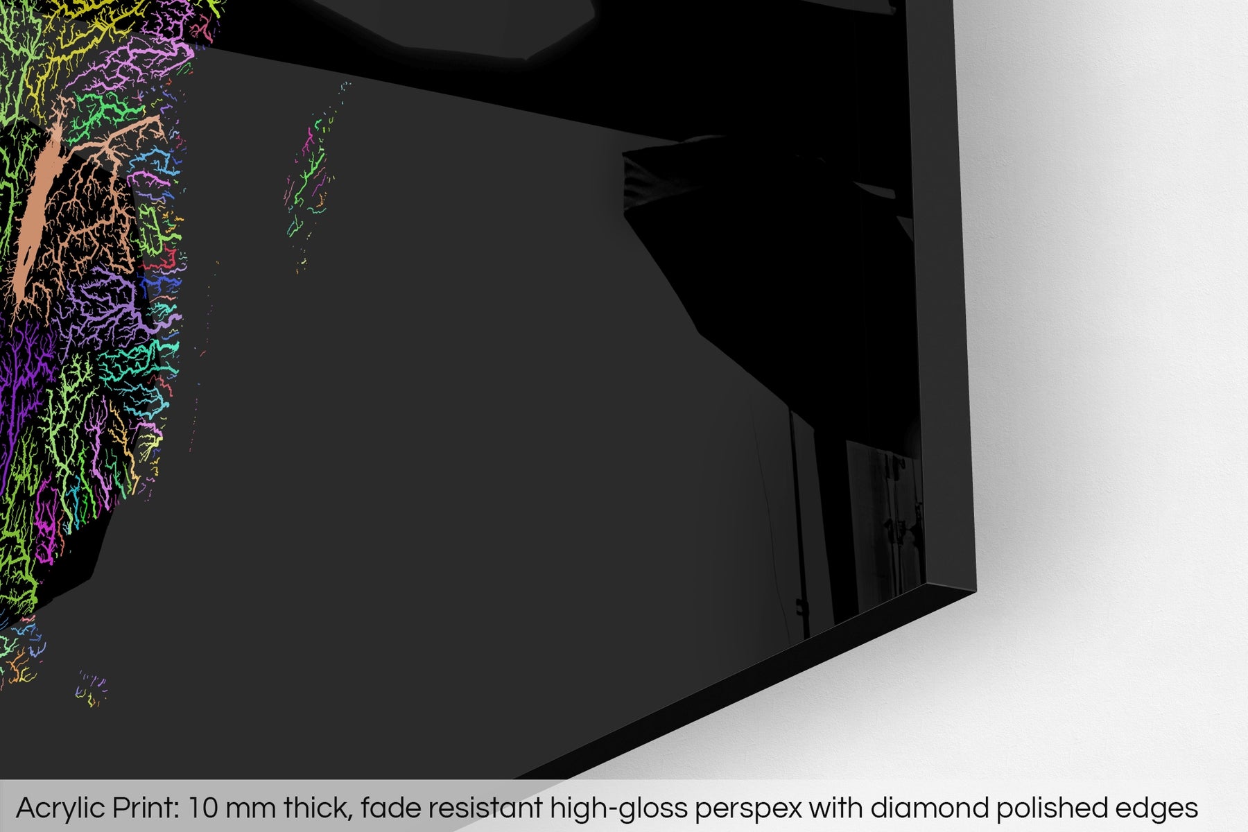 Scandinavia - River basin map, rainbow colours - Wall Art