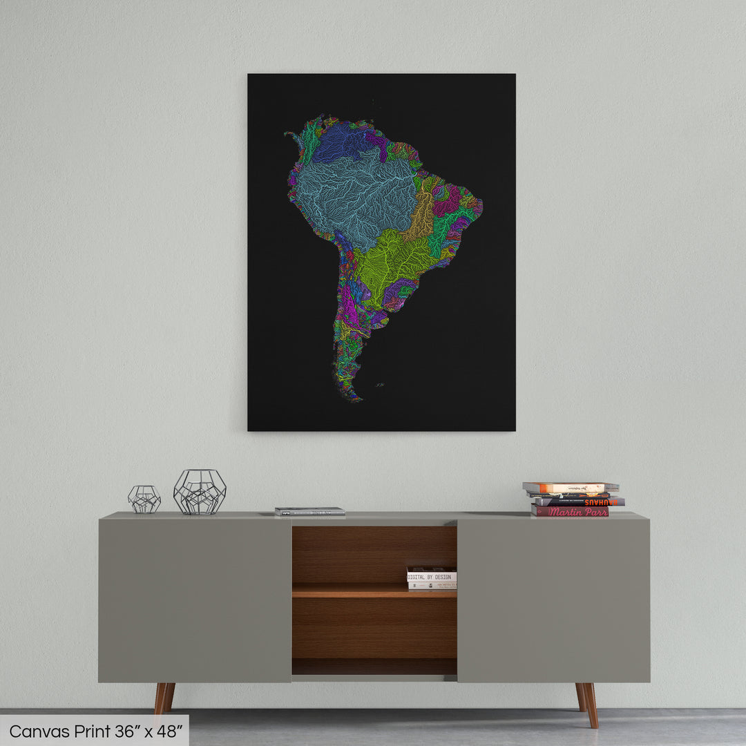 South America - River basin map, rainbow colours - Wall Art