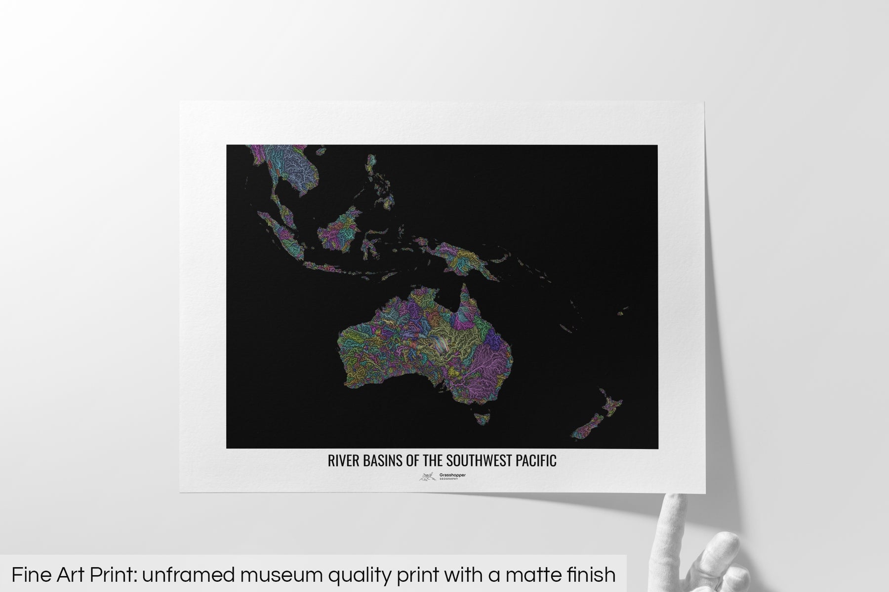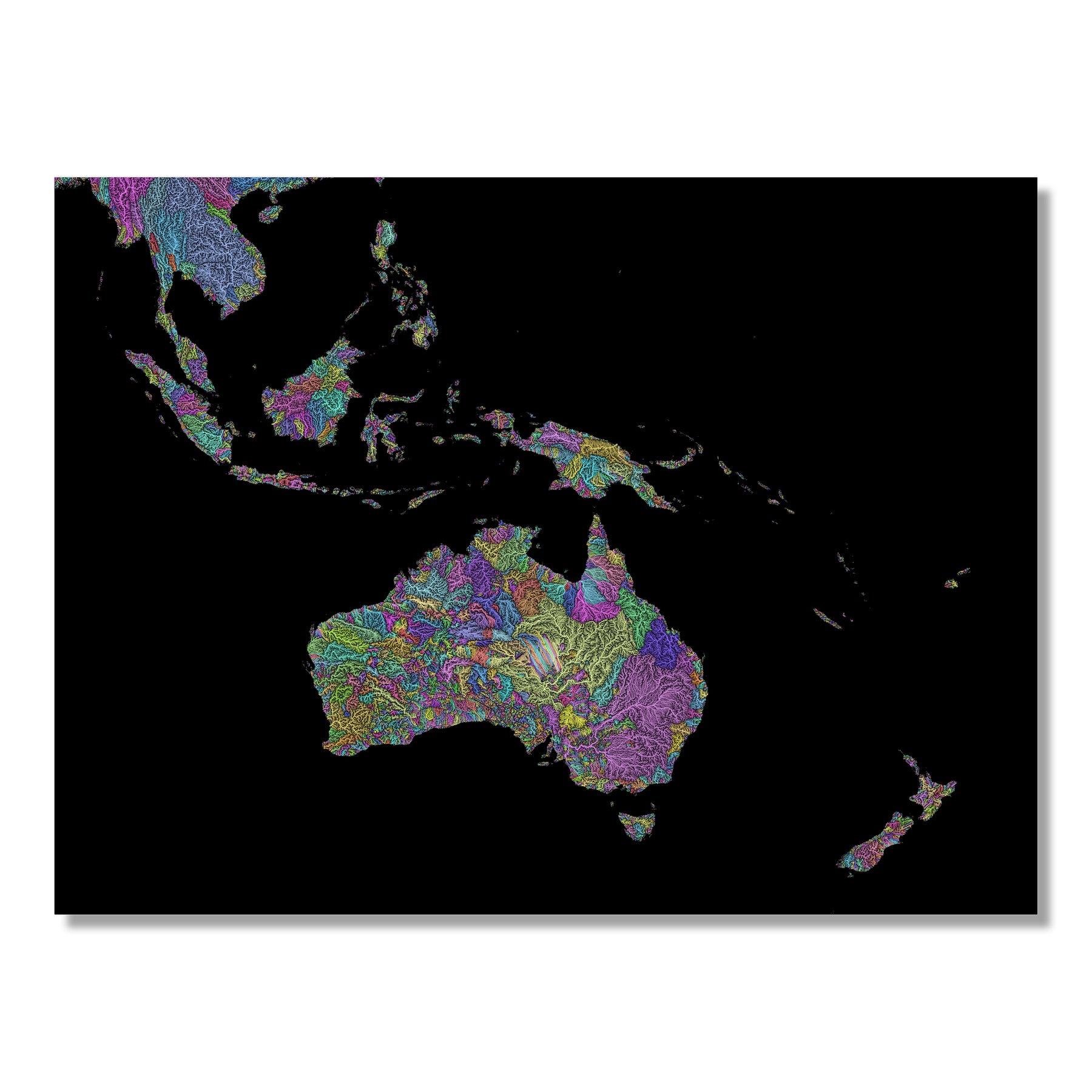 Southwest Pacific - River basin map, pastel colours - Wall Art