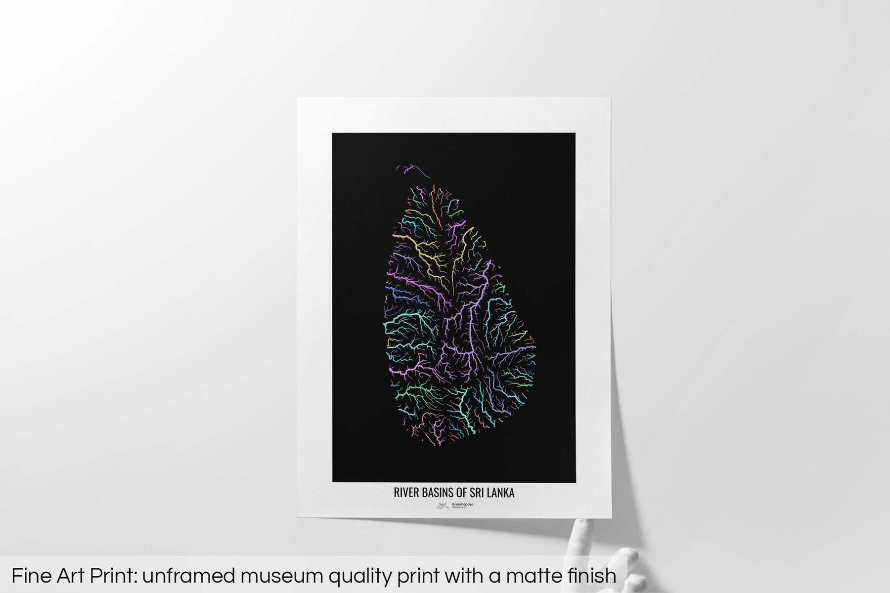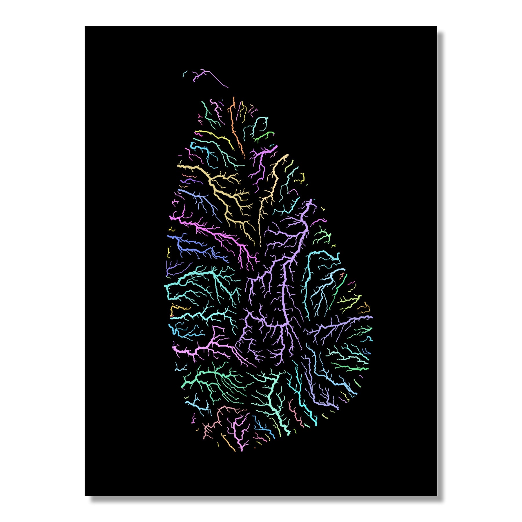 Sri Lanka - River basin map, pastel colours - Wall Art