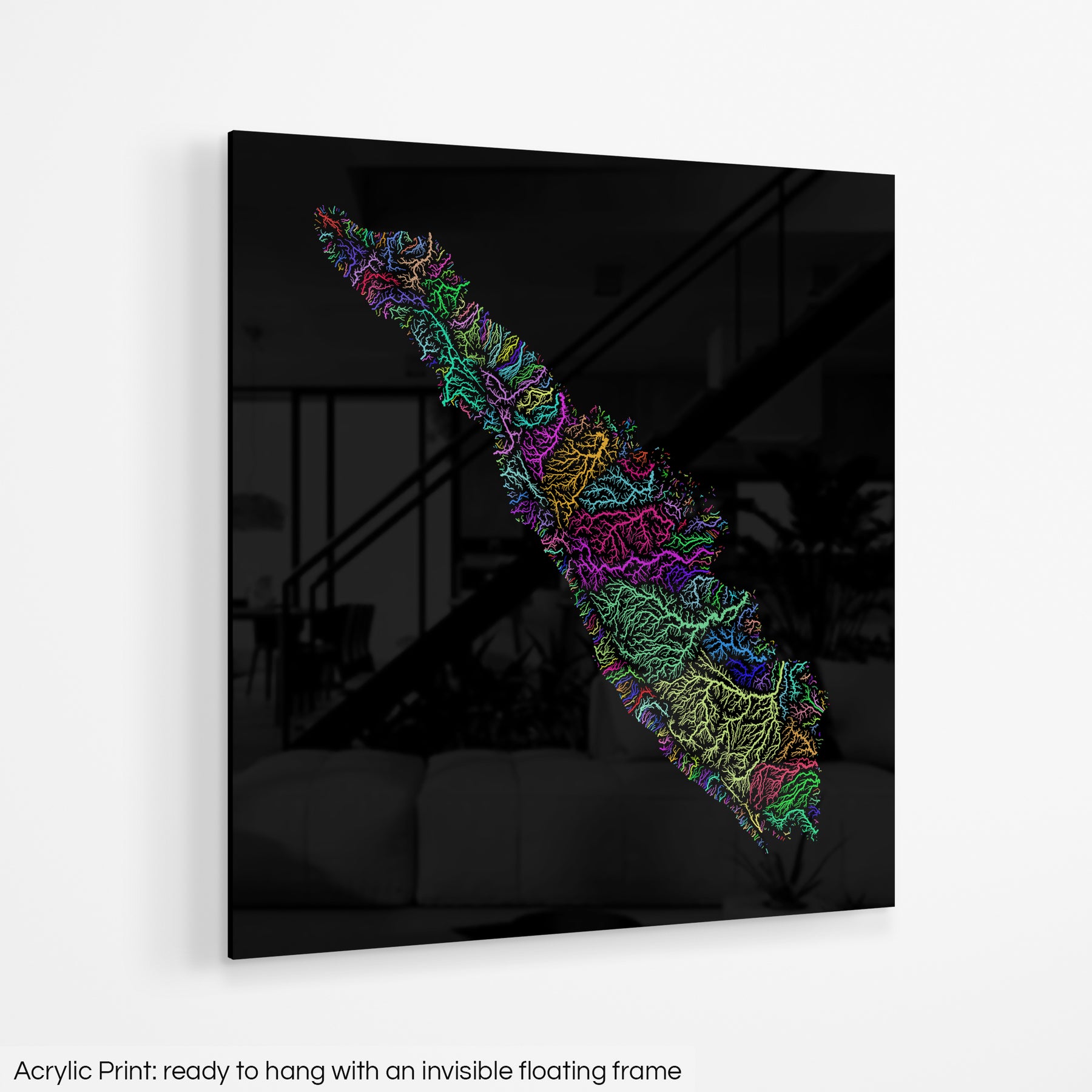 The fine art Giclée print is hand mounted onto a 10mm thick, premium polished, high-gloss acrylic glass that results in a vibrant finish. The transparency of the acrylic enhances the colours and details of the artwork, creating a stunning visual effect that will make a bold statement in any space.