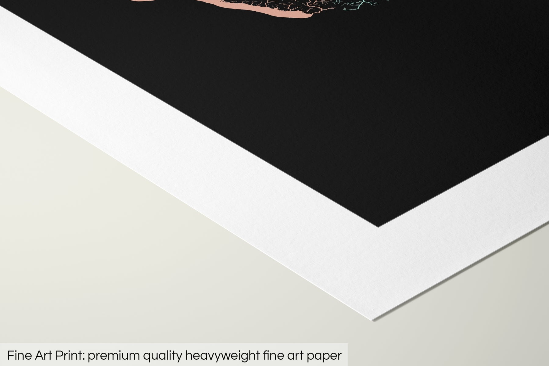 The museum-quality fine art paper exhibits intricate detail, and professional Giclée printing ensures the deepest blacks and the most vibrant colours. Crafted from sustainably sourced wood, the frames are available in a range of colours to match your map and interior.