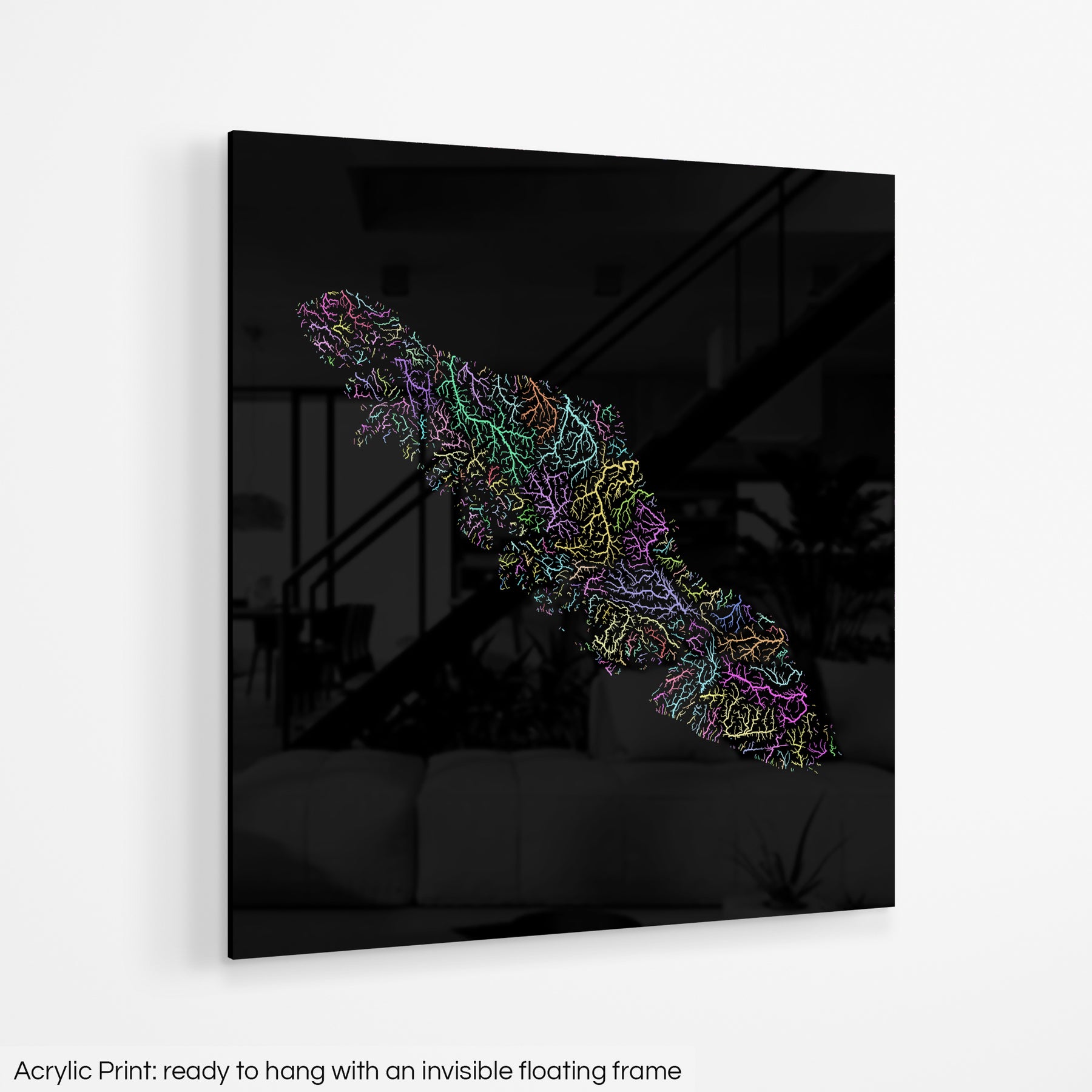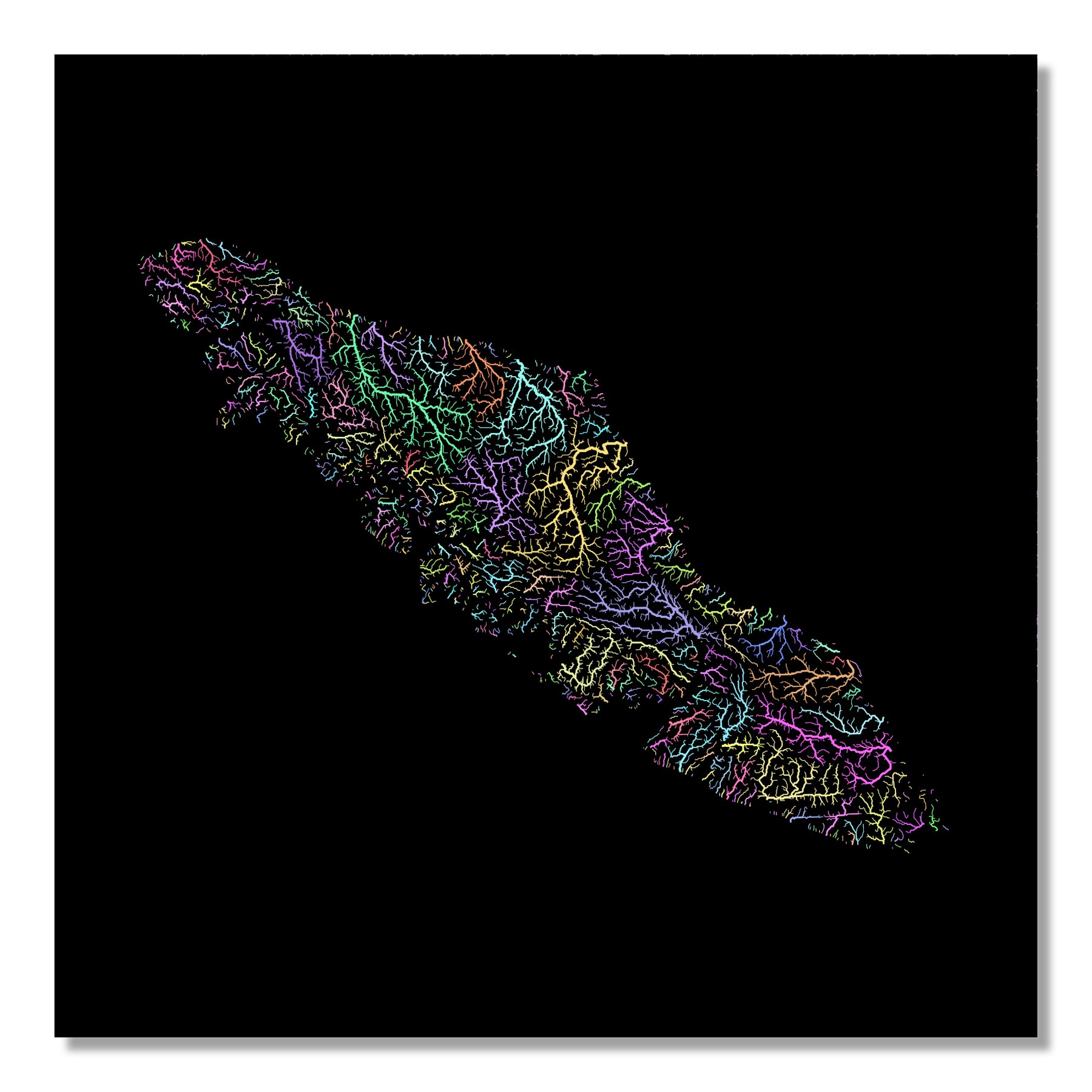 Vancouver Island - River basin map, pastel colours - Wall Art