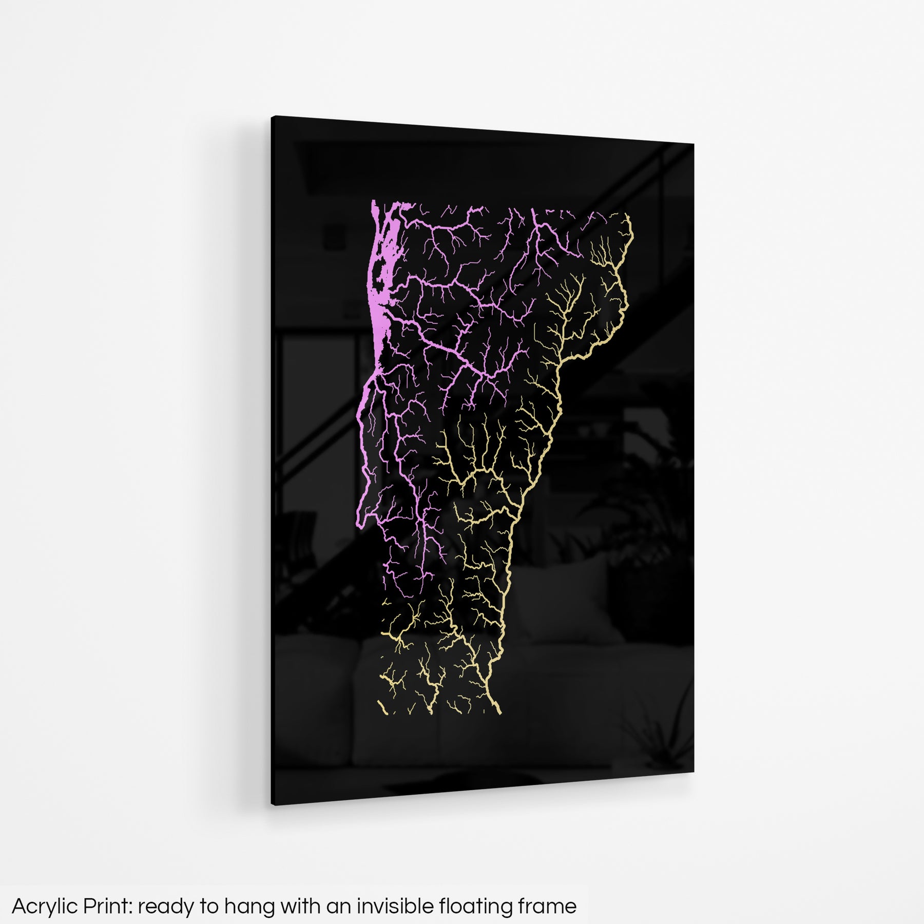 A fine art Giclée print is hand mounted onto 10mm thick high-gloss acrylic perspex that will protect your map from harmful UV light, keeping colours fresh and vivid for years to come. Ready to hang with an invisible floating frame.