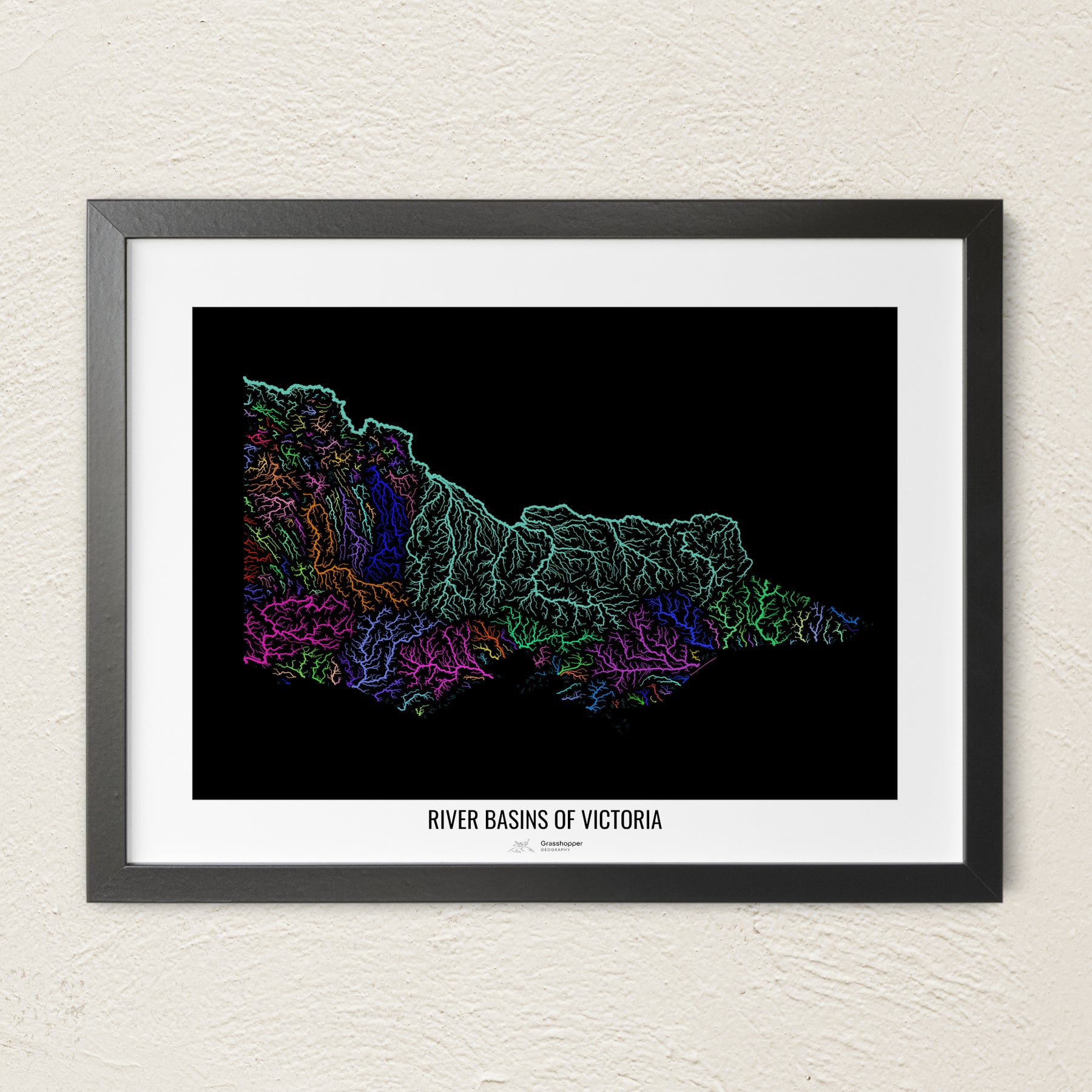 Victoria - River basin map, rainbow colours - Wall Art