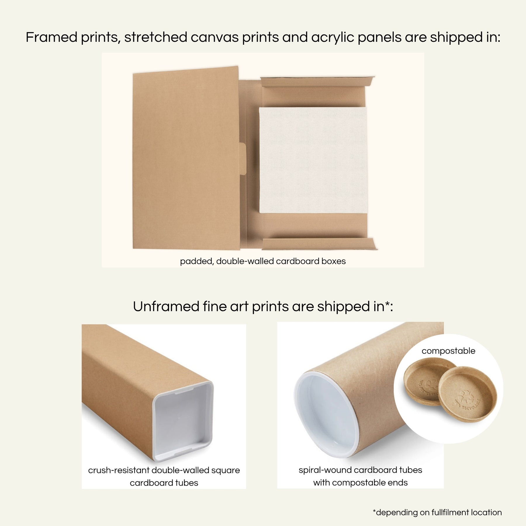 A finely textured artist-grade cotton substrate which consistently reproduces image details with outstanding clarity and detail. Giclée printed using archival inks and hand-mounted onto a fine quality European kiln-dried knotless pine frame. The perfect choice if you would like to add texture and substance to the artwork.