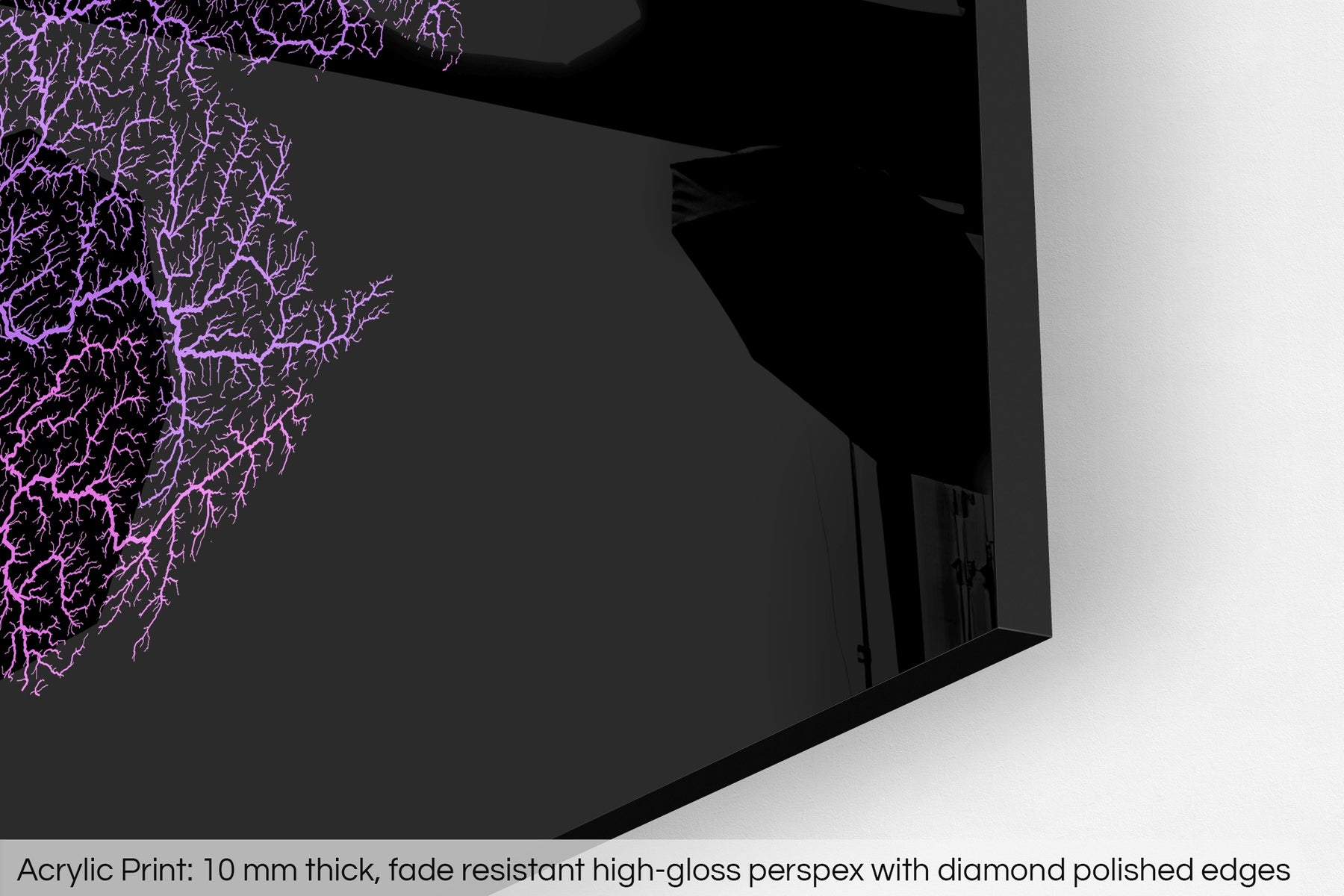The fine art Giclée print is hand mounted onto a 10mm thick, premium polished, high-gloss acrylic glass that results in a vibrant finish. The transparency of the acrylic enhances the colours and details of the artwork, creating a stunning visual effect that will make a bold statement in any space.