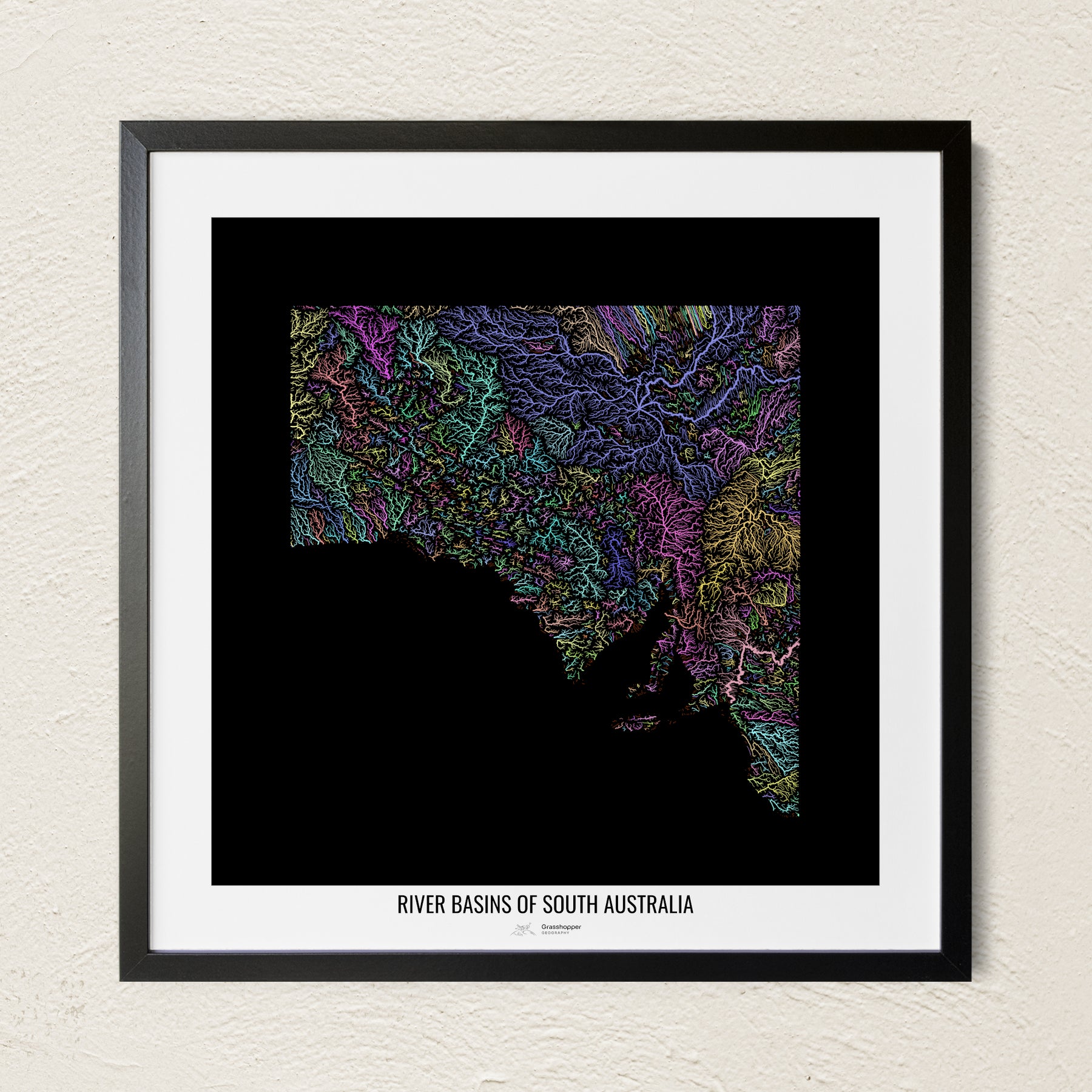 Südaustralien – Karte des Flussgebiets, Pastellfarben – Wandbild