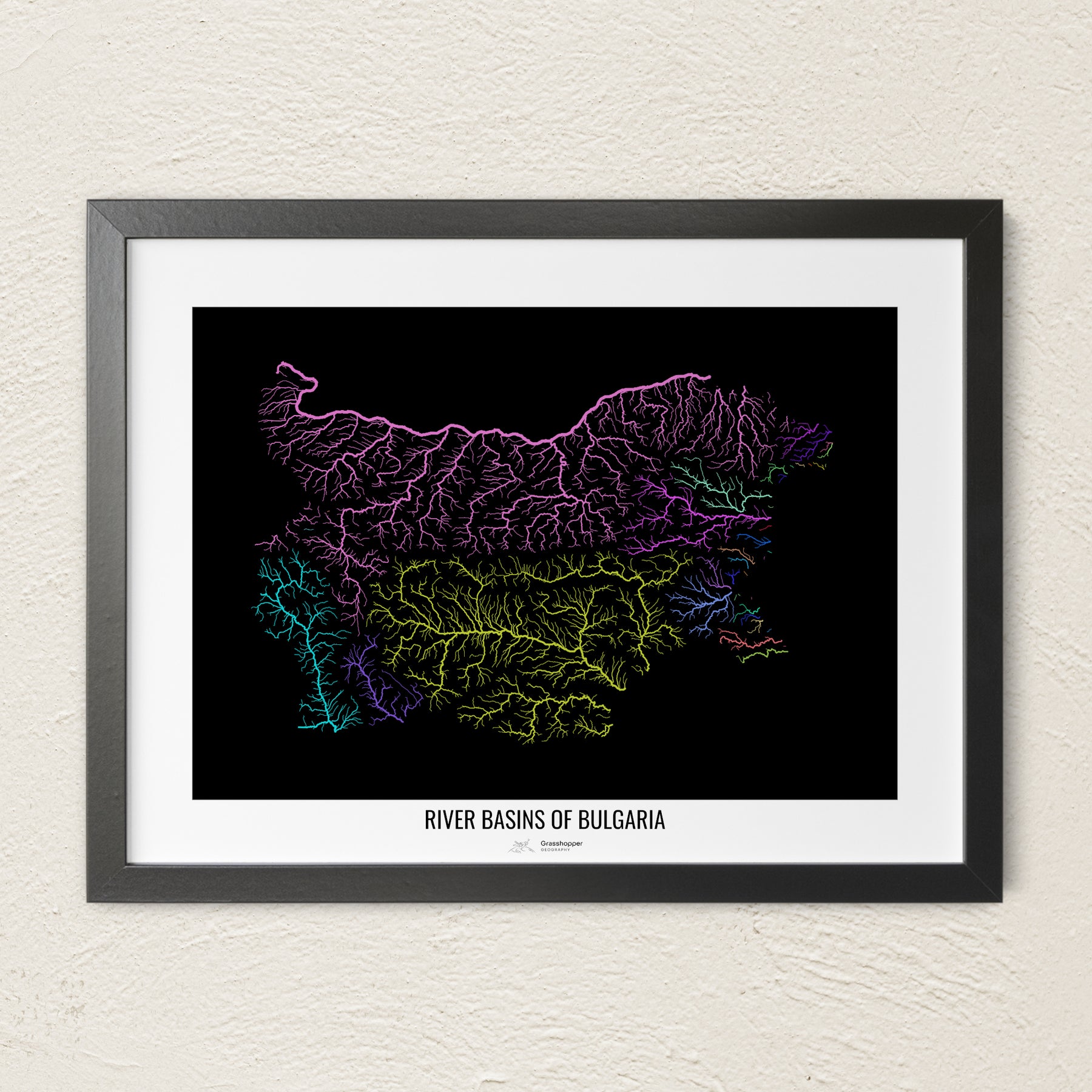 Bulgarien – Flussgebietskarte, Regenbogenfarben – Wandbild