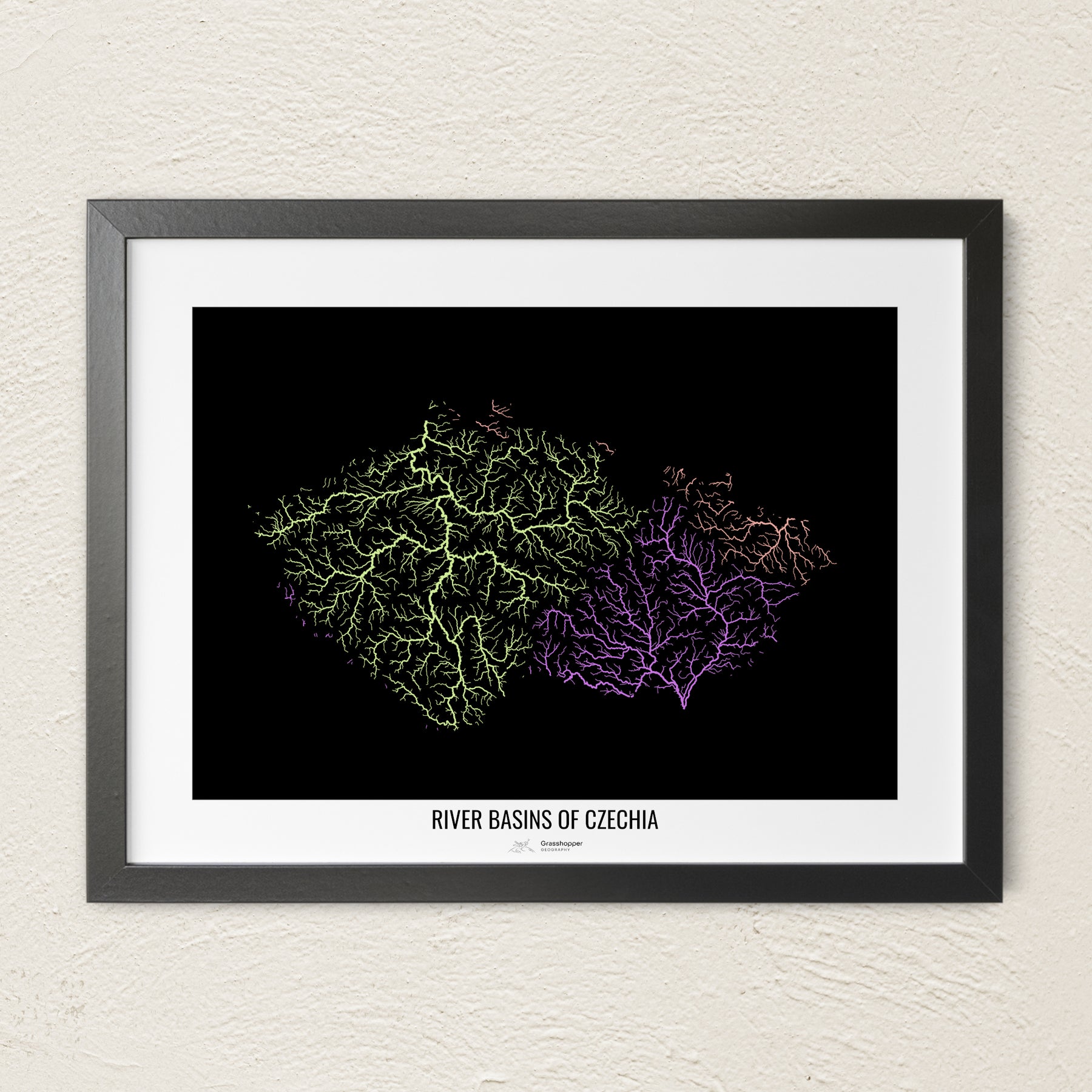 Tschechien – Flussgebietskarte, Pastellfarben – Wandbild