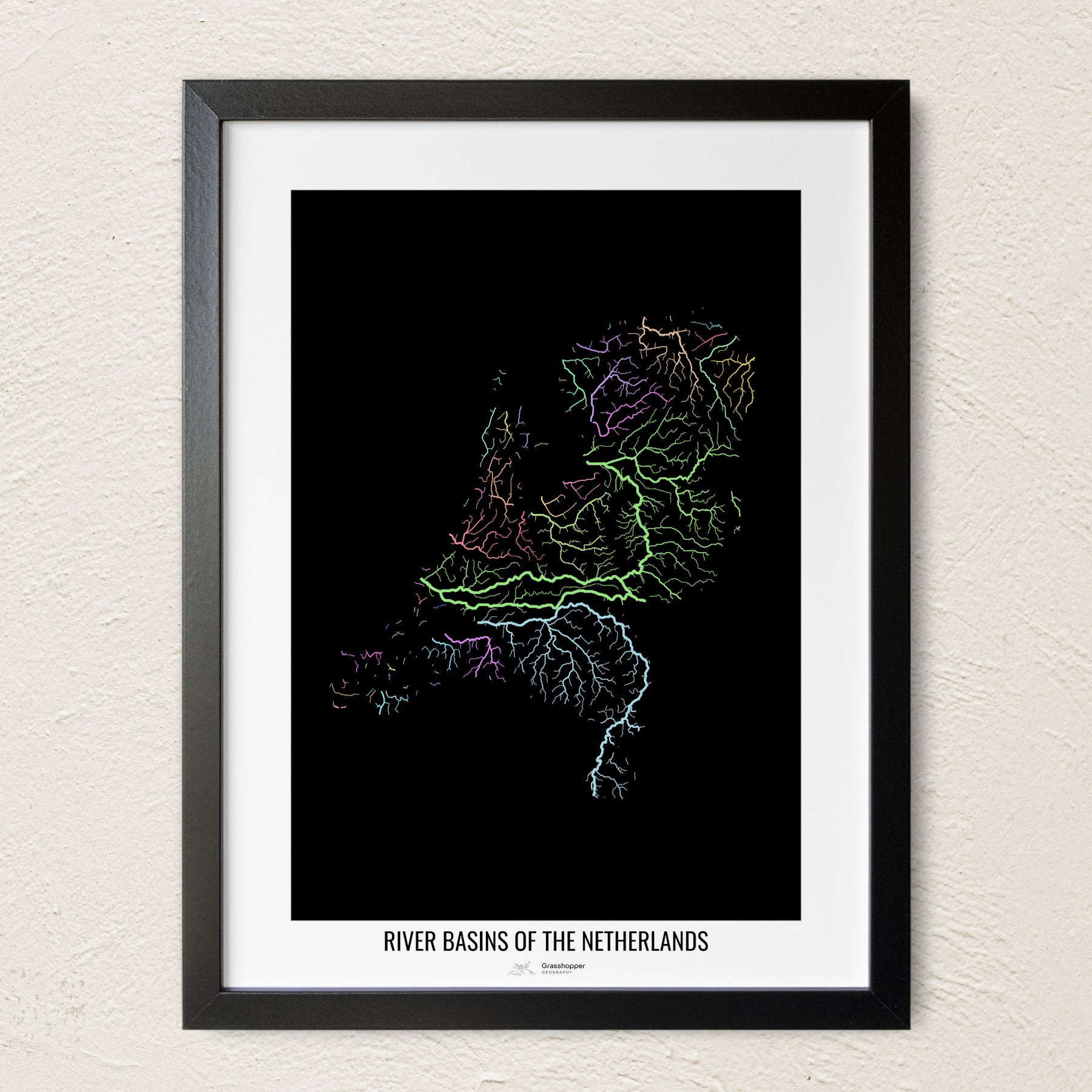 Niederlande – Flussgebietskarte, Pastellfarben – Wandbild