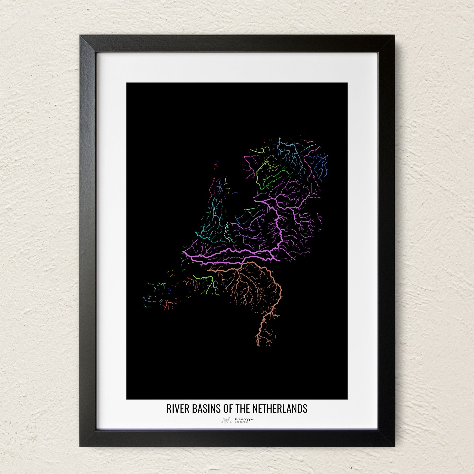 Niederlande – Flussgebietskarte, Regenbogenfarben – Wandbild