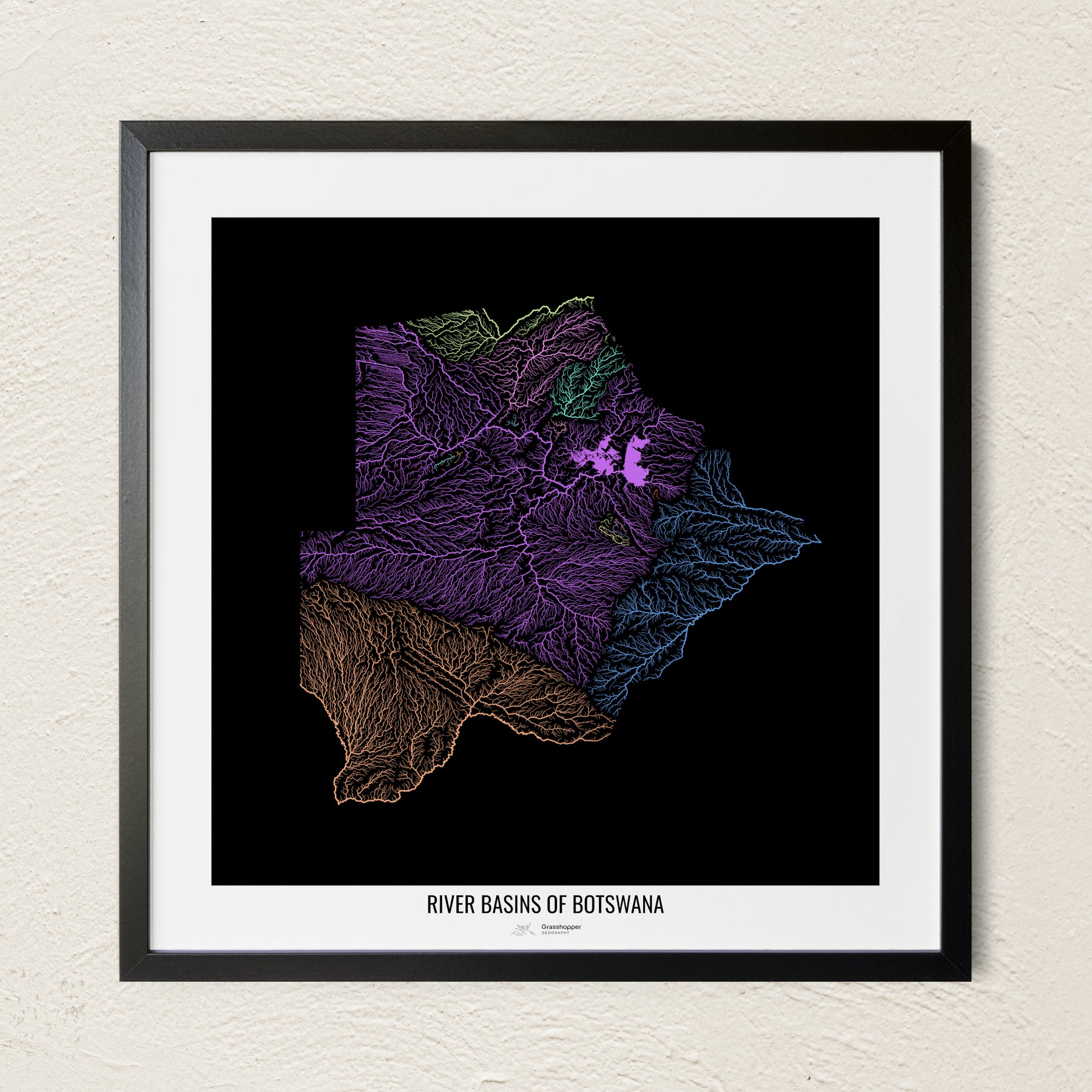 Botsuana - Mapa de cuencas fluviales, colores pastel - Arte mural