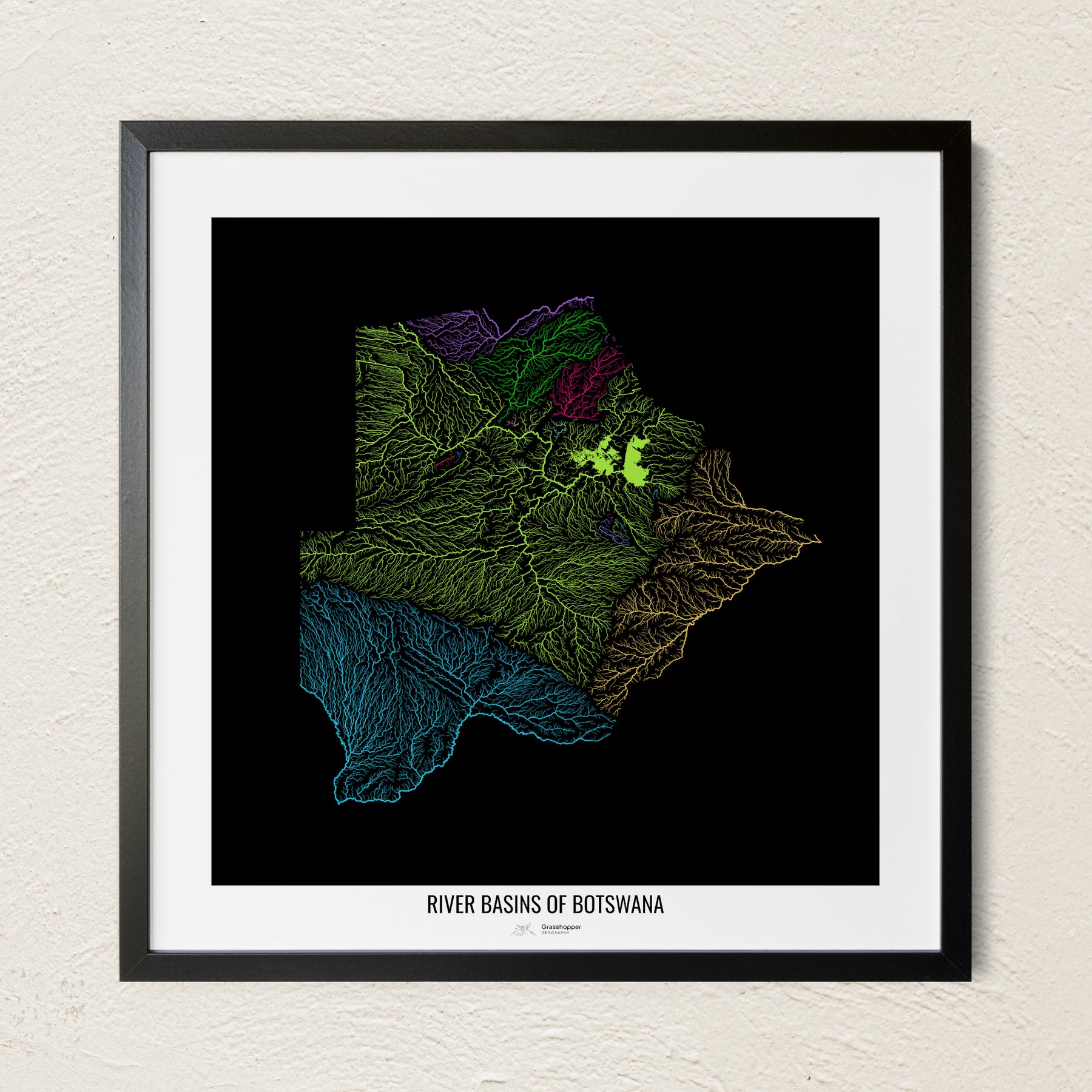 Botsuana - Mapa de cuencas fluviales, colores del arcoíris - Arte mural