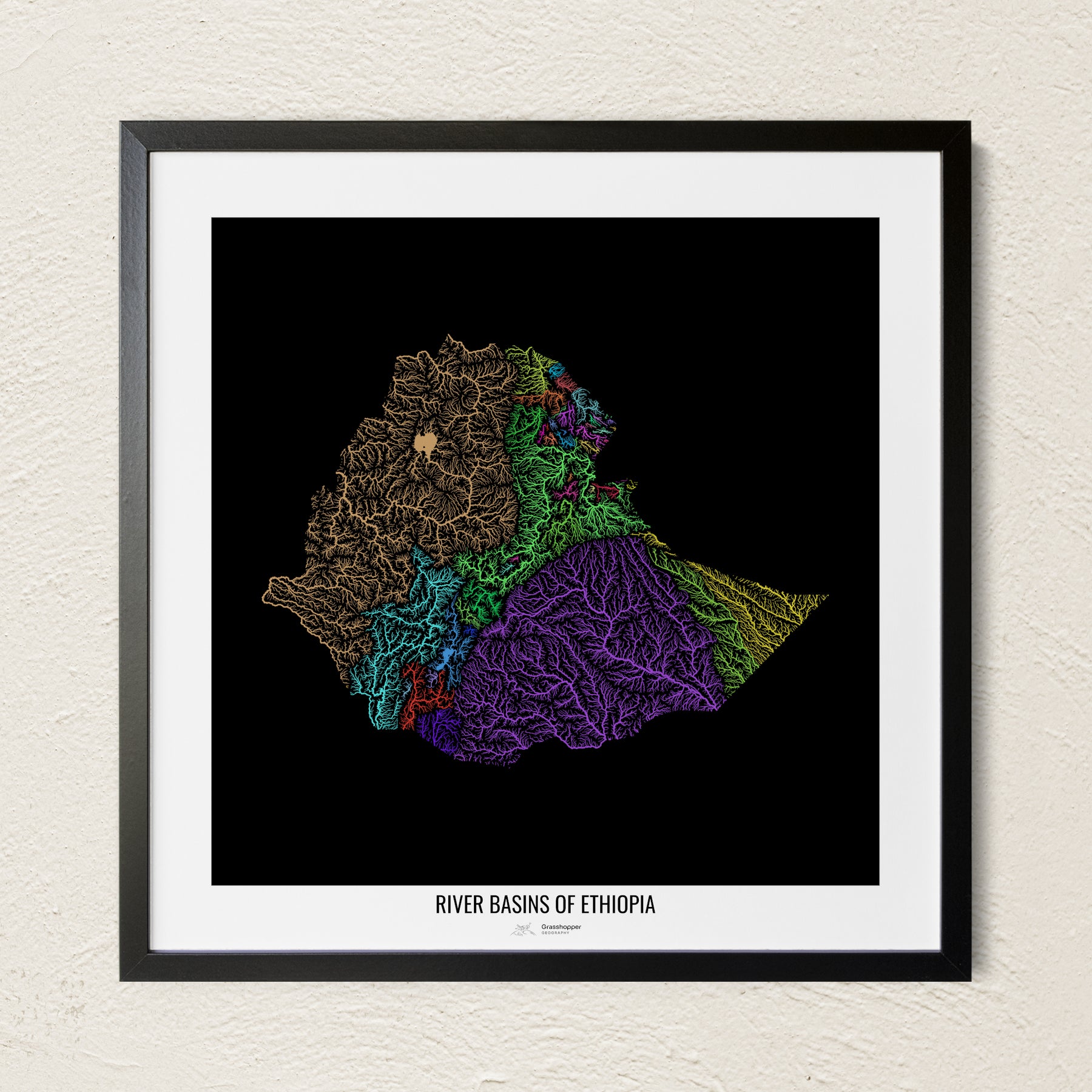 Etiopía - Mapa de cuencas fluviales, colores del arcoíris - Arte mural