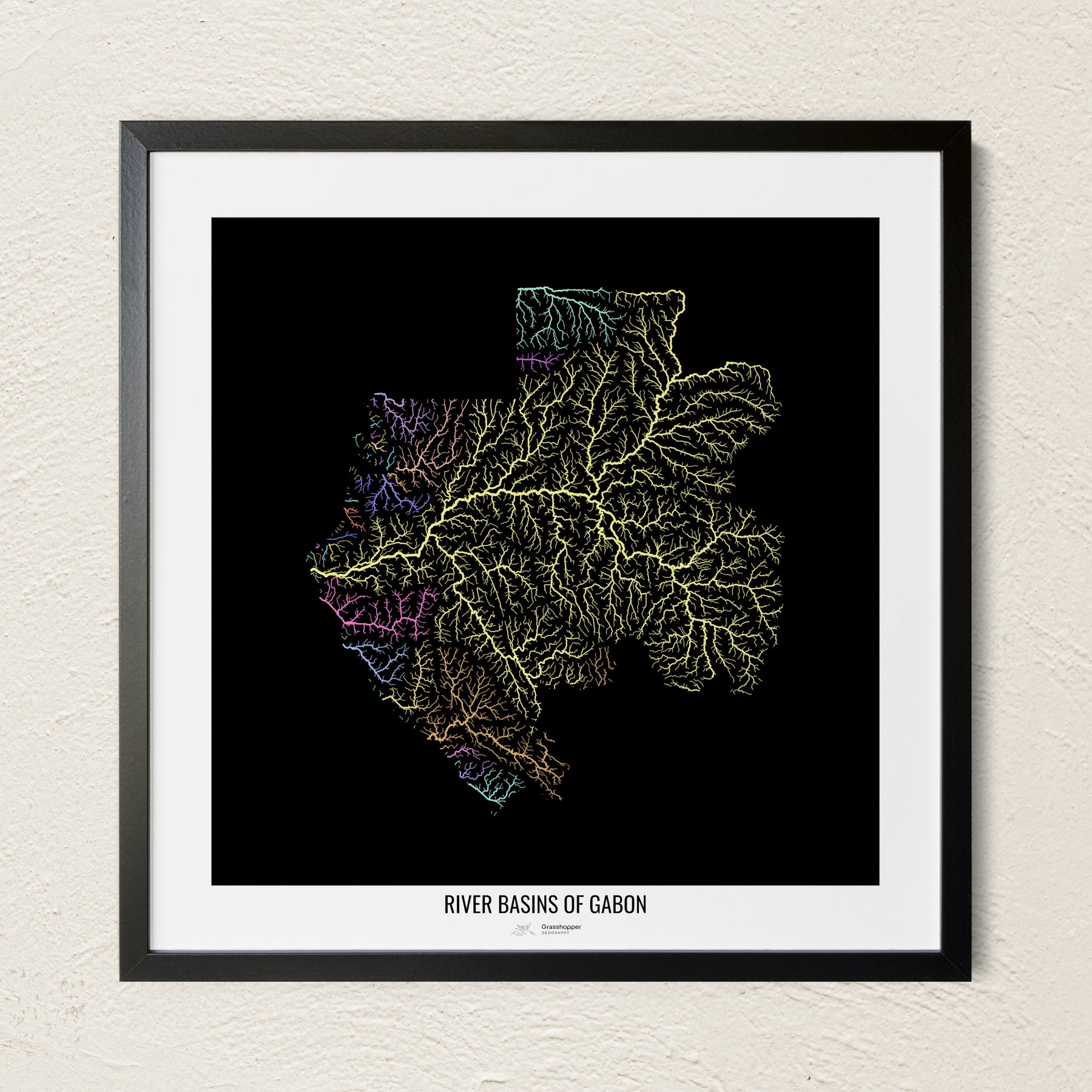 Gabón - Mapa de la cuenca fluvial, colores pastel - Arte mural