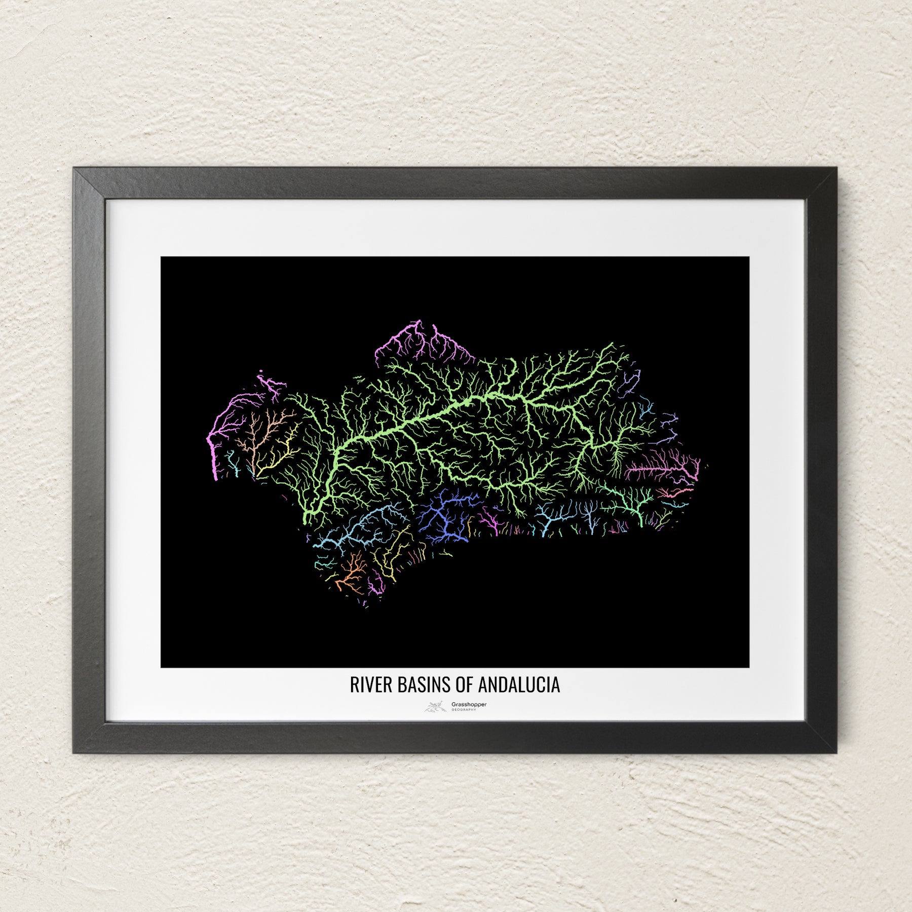 Andalucía - Mapa de la cuenca fluvial, colores pastel - Arte mural