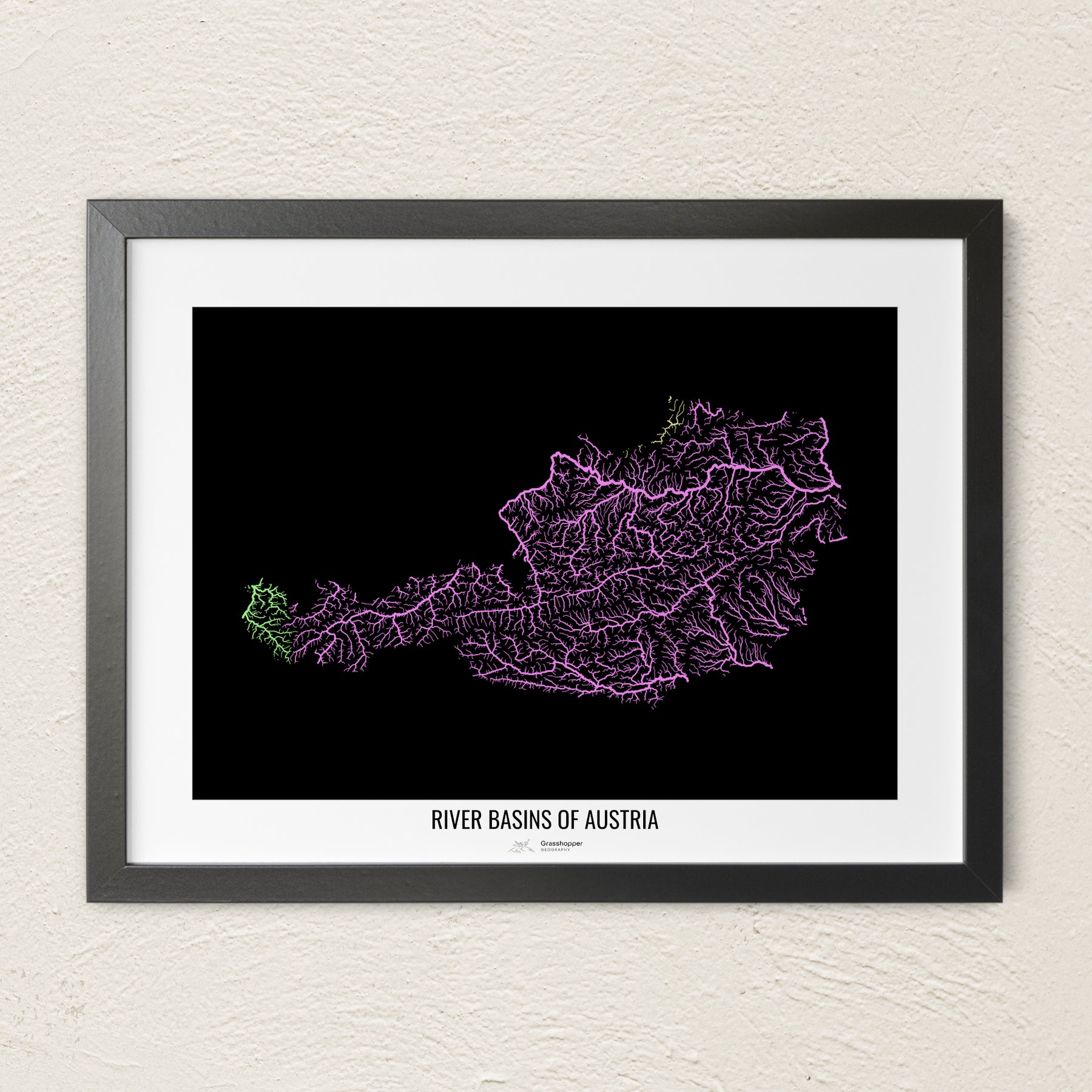 Austria - Mapa de cuencas fluviales, colores pastel - Arte mural