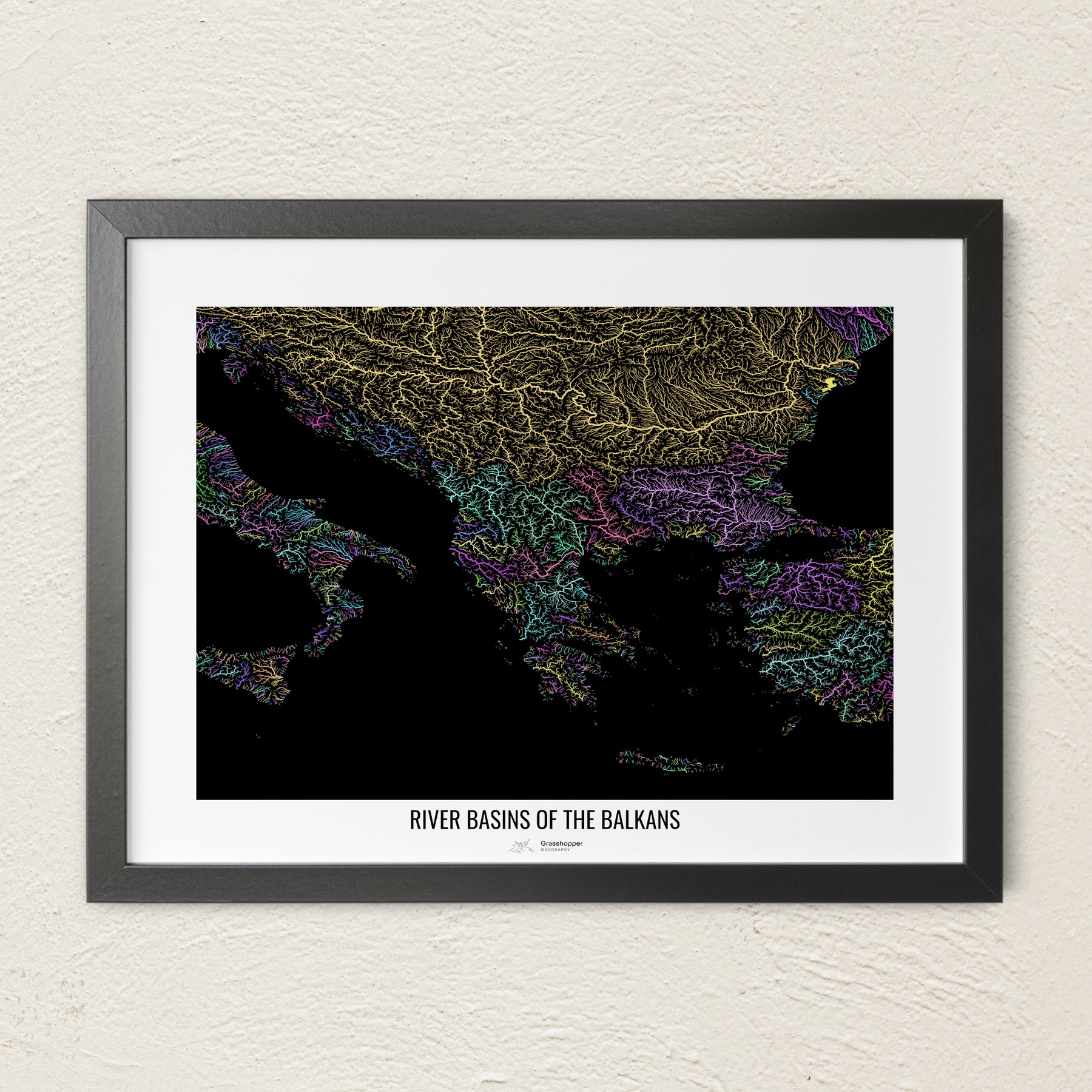 Balcanes - Mapa de cuencas fluviales, colores pastel - Arte mural