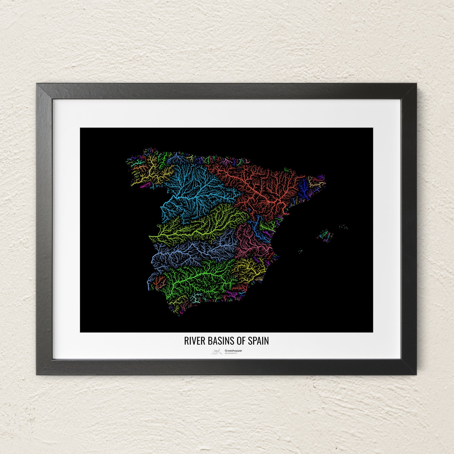 España - Mapa de cuencas fluviales, colores del arcoíris - Arte mural