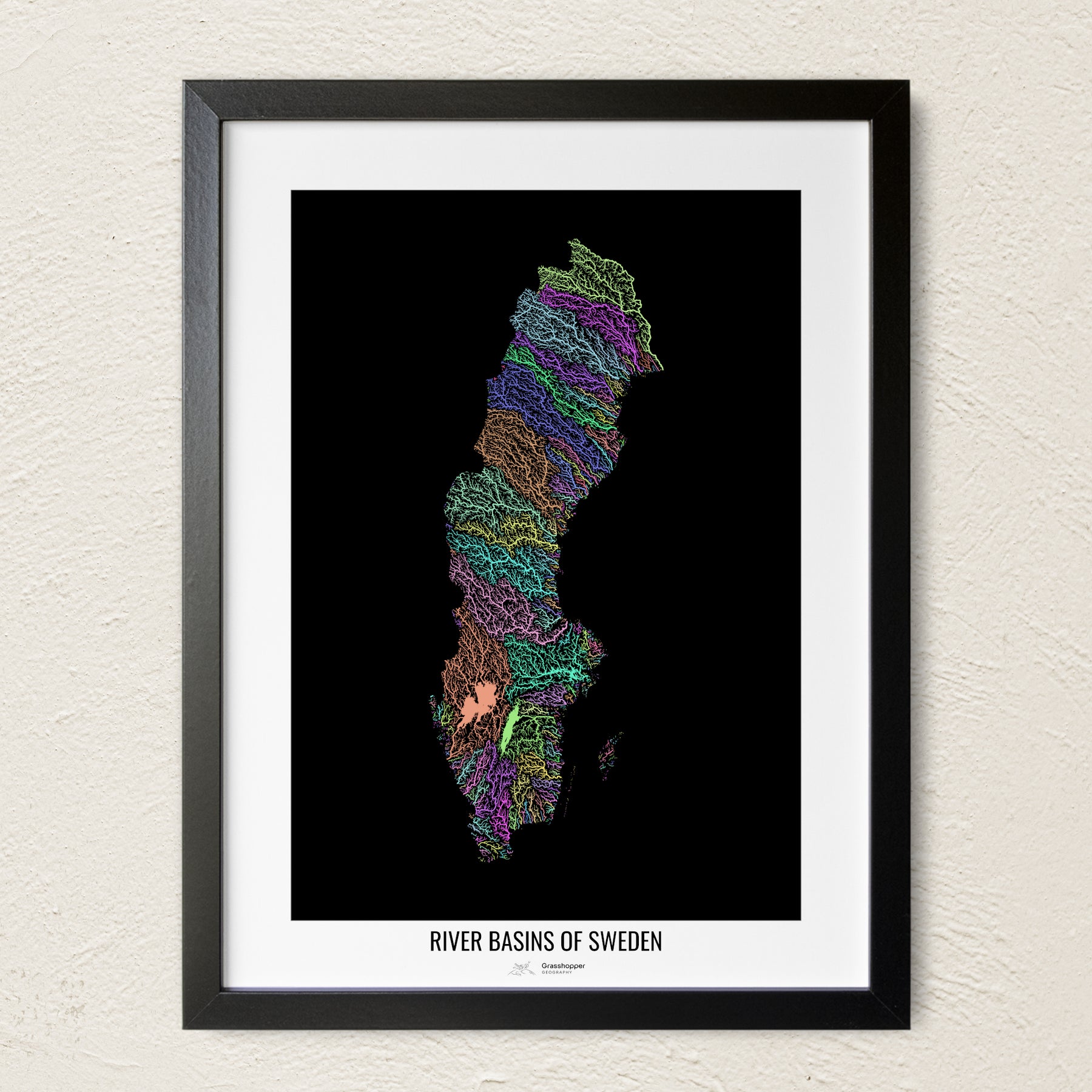 Suecia - Mapa de cuencas fluviales, colores pastel - Arte mural