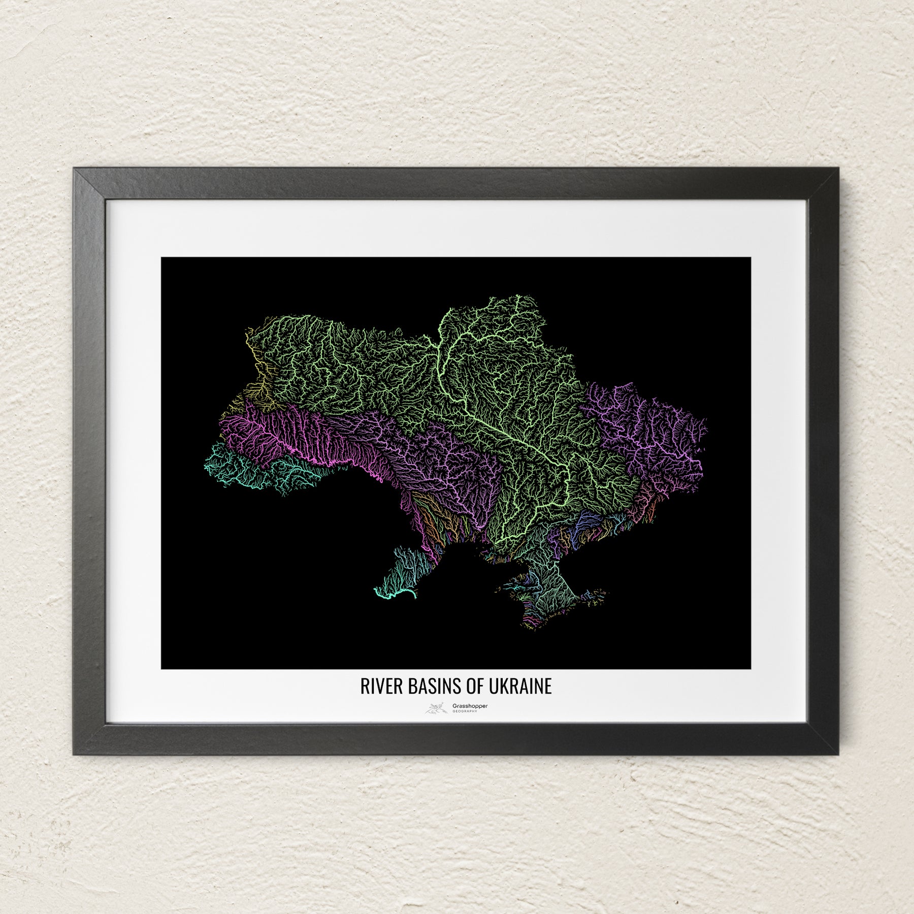 Ucrania - Mapa de cuencas fluviales, colores pastel - Arte mural