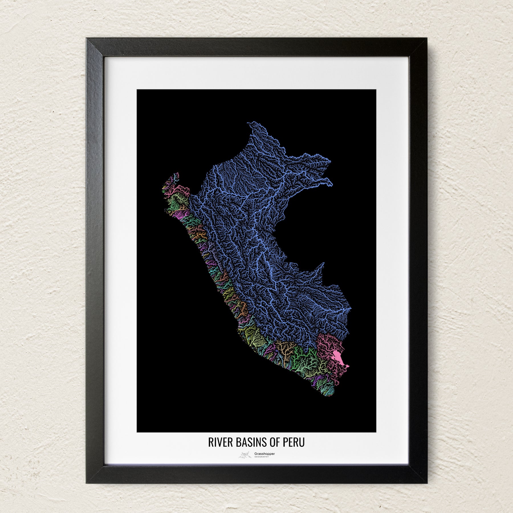 Perú - Mapa de cuencas fluviales, colores pastel - Arte mural