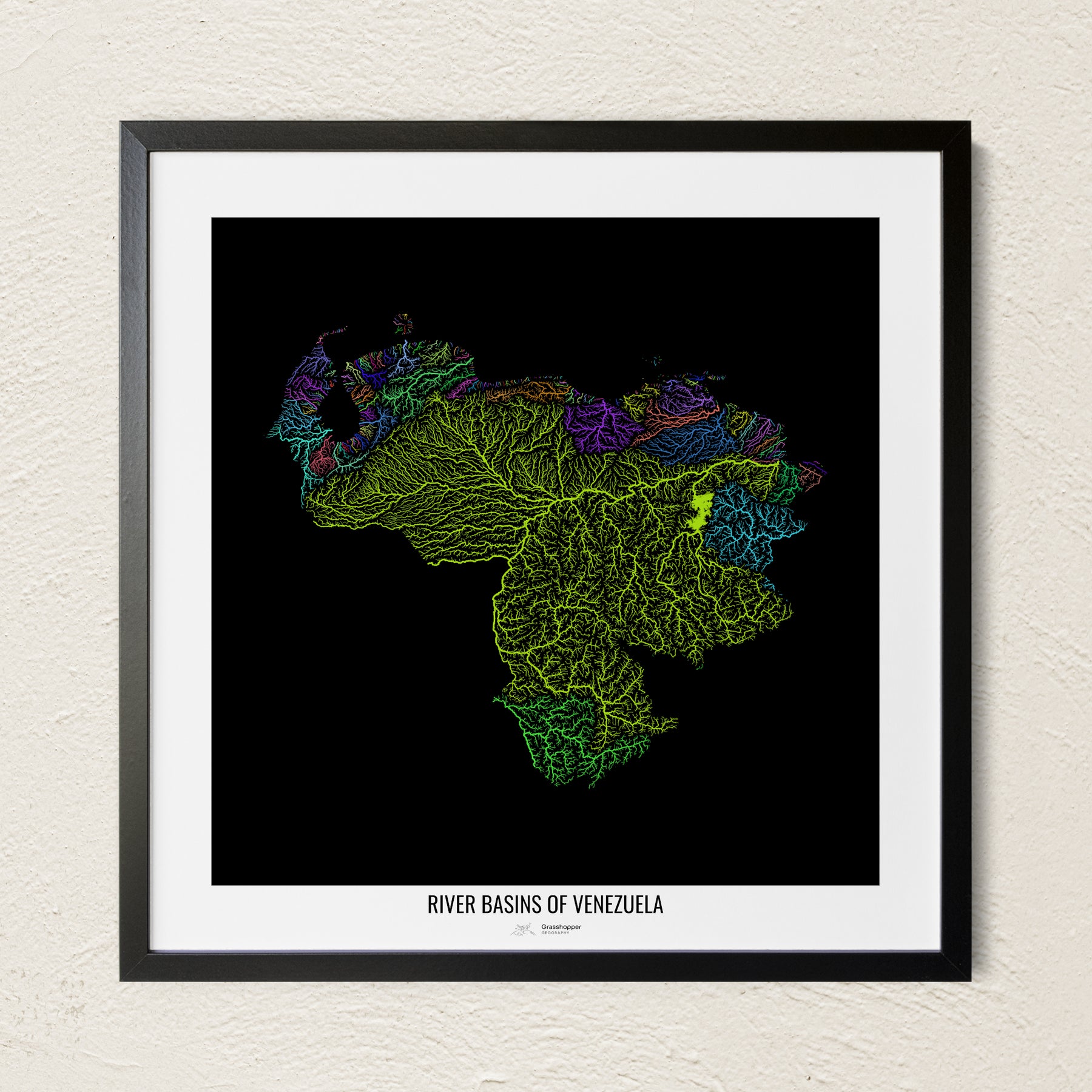 Venezuela - Mapa de cuencas fluviales, colores del arcoíris - Arte mural