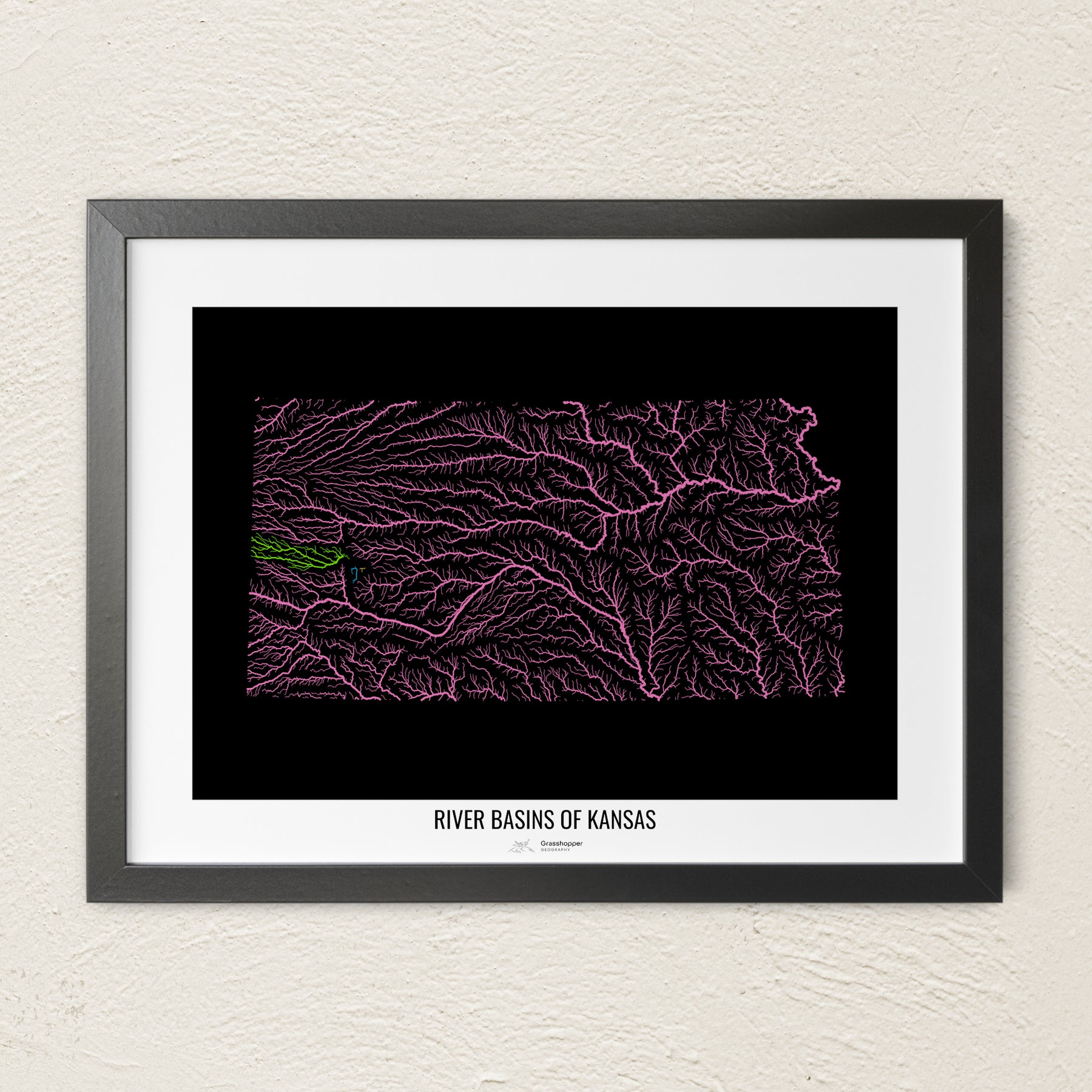 Mapa de la cuenca del río Kansas, colores del arcoíris - Arte mural